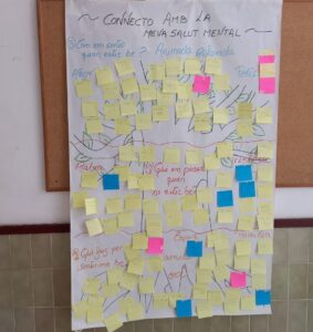 D’altra banda al llarg del curs participem de les diverses activitats que ens ofereixen des de diferents serveis públics, com el cos de Mossos d’Esquadra o l’Ajuntament de Palafrugell. La setmana passada vam participar d’una activitat de sensibilització sobre la SALUT MENTAL amb la Noemí Adarnius ( tècnica comunitària de l’Ajuntament) i l’Imma Martí (referent de Benestar Emocional Comunitari de l’ABS Palafrugell).