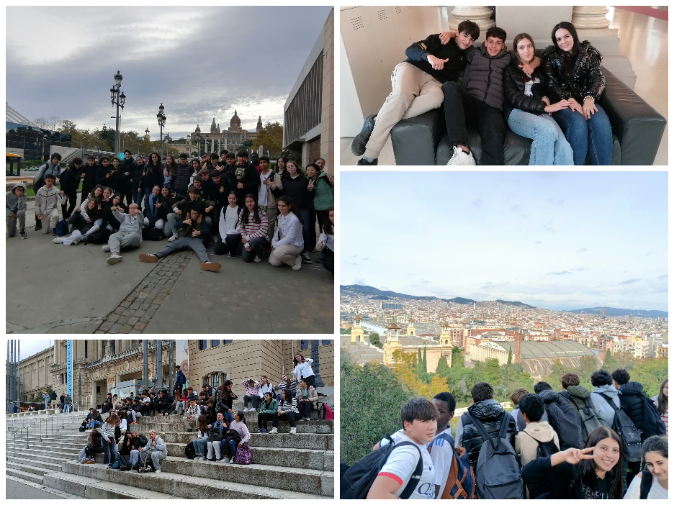 Continuem al bus pensant què podem fer… En acabat decidim anar a la zona de Montjuïc, si més no, estirarem les cames. Demanem al Museu Nacional d’Art de Catalunya si ens poden acollir i fer una visita. Ara sí! Podem entrar, fem una visita a les sales d’art antic, des del Romànic al Barroc, improvisant explicacions i recordant el què havien treballat a història del curs anterior. Dinem i tornem cap a Palafrugell.