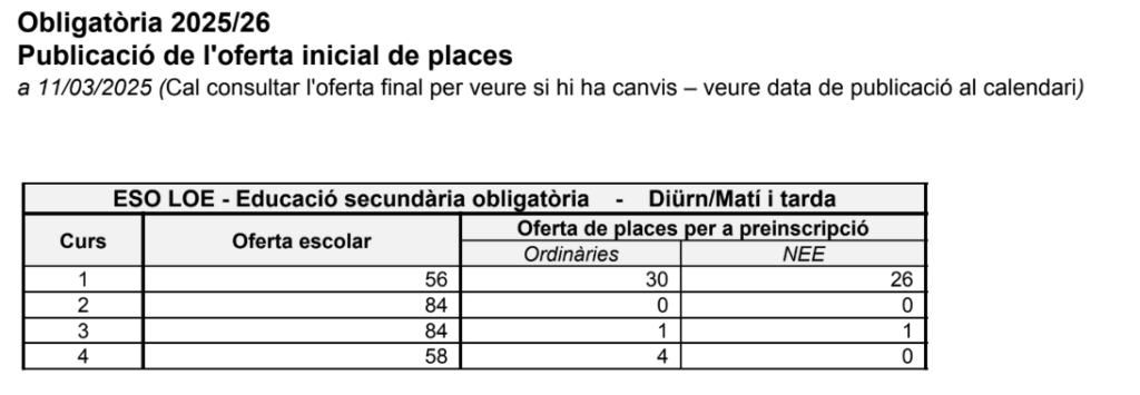 Al Mapa escolar de la preinscripció curs 2025/26 podreu trobar més informació sobre la oferta inicial de places.