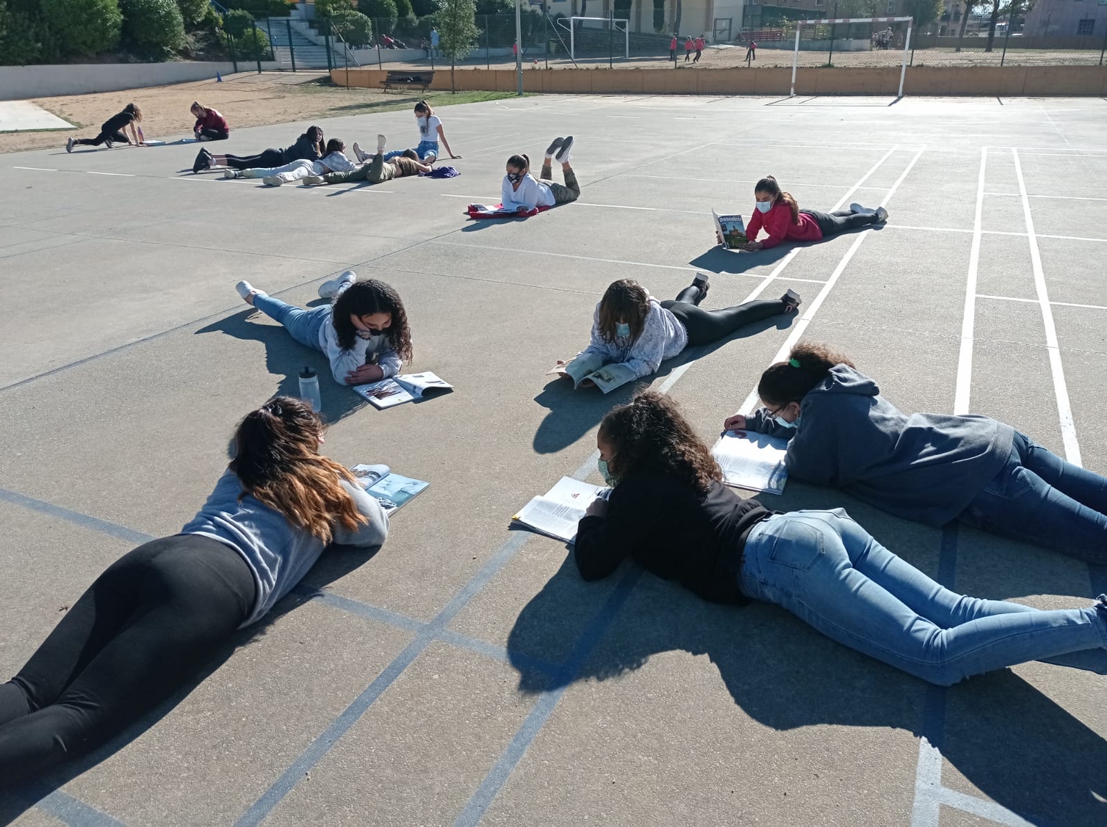 Al nostre centre dediquem 30 minuts diaris a llegir, aquesta setmana hem canviat la temàtica de les lectures i hem llegit ciència (articles, còmics, llibres, revistes…). A més, com que el temps ens ha acompanyat, hem sortit al pati.