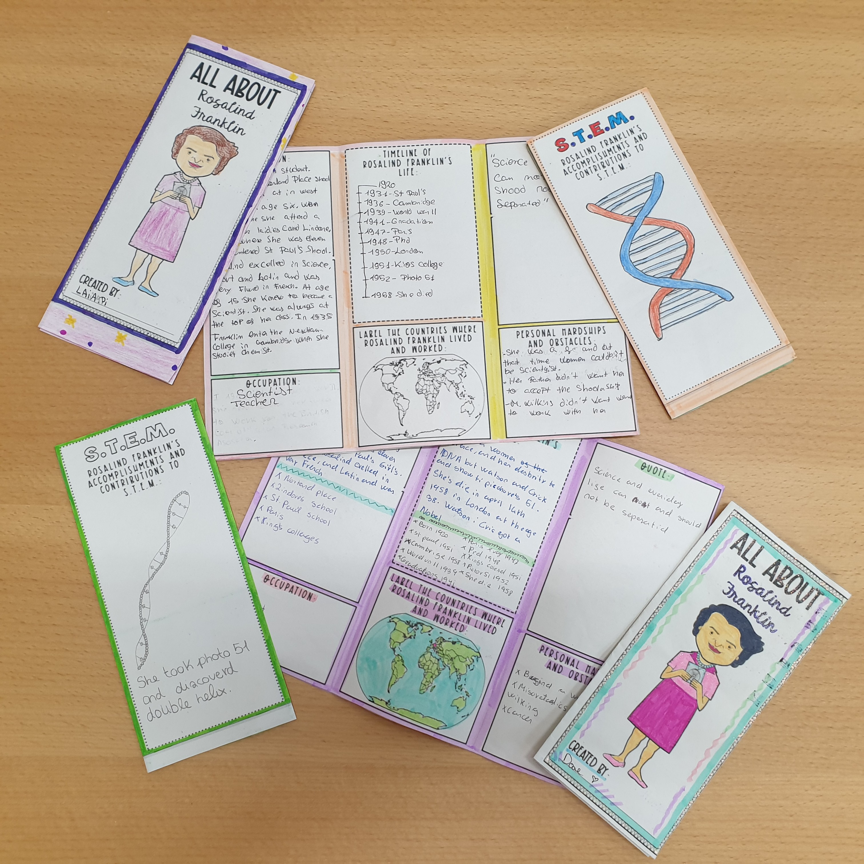 In the English class we have been working on a foldable brochure that has been a great way to ensure our students to dig deeper into facts about Rosalind Franklin’s biography.