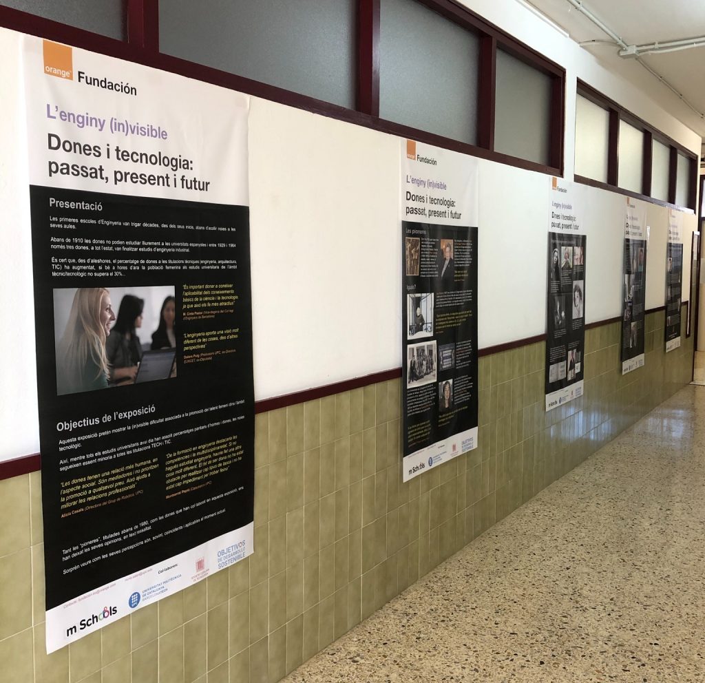 Al passadís del centre hem exposat 5 rollups sobre el paper de les dones en el món tecnològic, exposició lligada a la conferència de la Núria Salán.