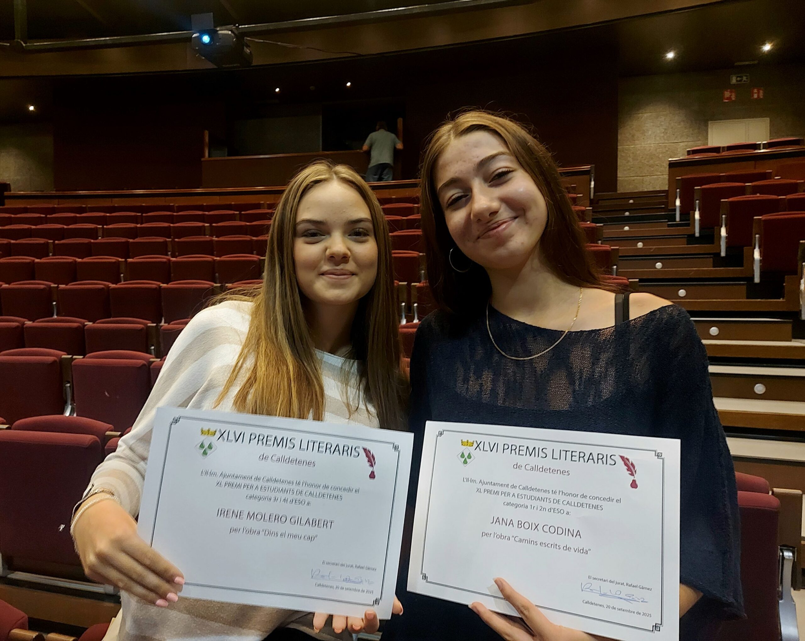 Jana Boix i Irene Molero han estat les guanyadores del XLIV Premis literaris per a estudiants de secundària de Calldetenes, en el marc dels XLVI Premis literaris de Calldetenes.