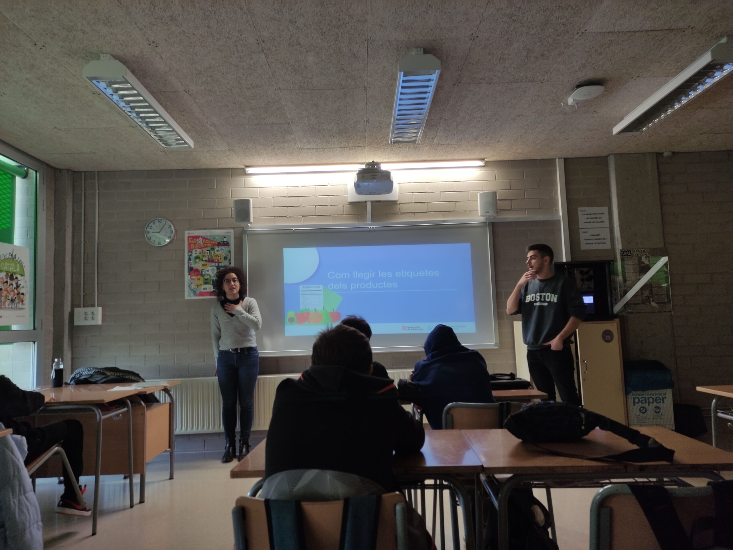 Avui a 1r ESO hem rebut la segona sessió del “Taller d’Alimentació Saludable” a càrrec de la infermera i el nutricionista referents del centre. L’alumnat han après a interpretar l’etiquetatge dels productes.
