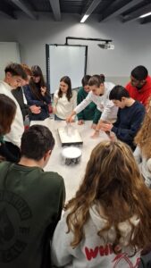 Els estudiants de 1r de Batxillerat van endinsar-se en la física experimental de principis del segle XX amb el taller “El laboratori Mentora Alsina”. A través d’experiments pràctics, van descobrir fenòmens relacionats amb la pressió, la llum i l’electricitat, tal com es feia en els laboratoris de l’època. Per la seva banda, els alumnes de 2n de Batxillerat van participar en un taller de detecció de partícules subatòmiques, aprofundint en els principis de la física moderna.