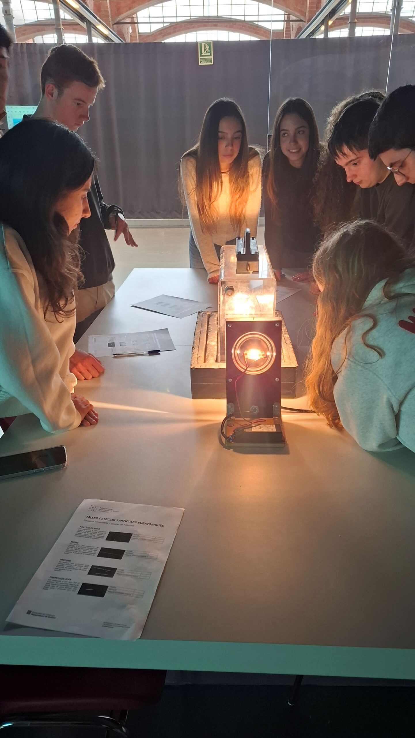 Els estudiants de 1r de Batxillerat van endinsar-se en la física experimental de principis del segle XX amb el taller “El laboratori Mentora Alsina”. A través d’experiments pràctics, van descobrir fenòmens relacionats amb la pressió, la llum i l’electricitat, tal com es feia en els laboratoris de l’època. Per la seva banda, els alumnes de 2n de Batxillerat van participar en un taller de detecció de partícules subatòmiques, aprofundint en els principis de la física moderna.