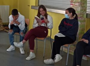 Els alumnes es van col·locar formant un cercle amb les cadires i van començar a llegir-lo en veu alta entre tots. També van reflexionar sobre el tema fent preguntes força interessants.