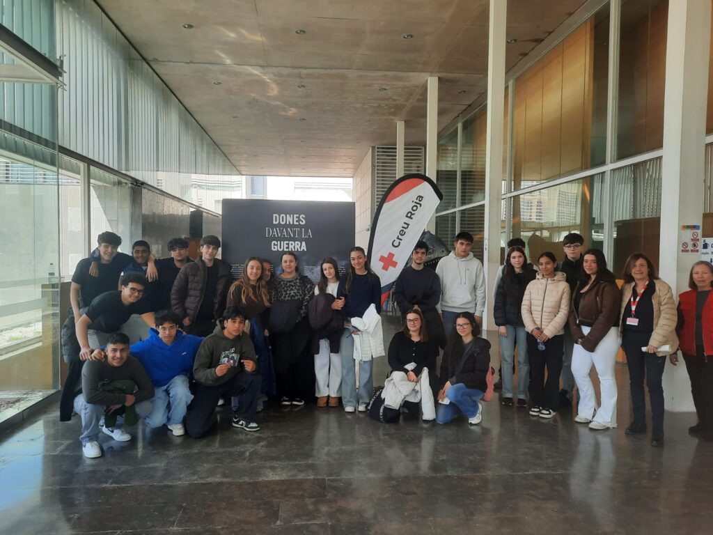 Dimecres passat els alumnes de 1r de Batxillerat B que cursen l’assignatura de Ciutadania, Política i Dret i l’alumnat de 2n de Batxillerat que cursen l’assignatura d’ODS van fer una sortida a l’exposició “Dones davant la guerra” al TAS de Salou organitzada per la Creu Roja on es visibilitza la vulneració de drets de dones i nenes en conflictes (Colòmbia, Sàhara, Palestina, Ucraïna, Bòsnia, Kosovo) destacant el seu rol com a supervivents i constructores de pau, superant la visió de víctimes.