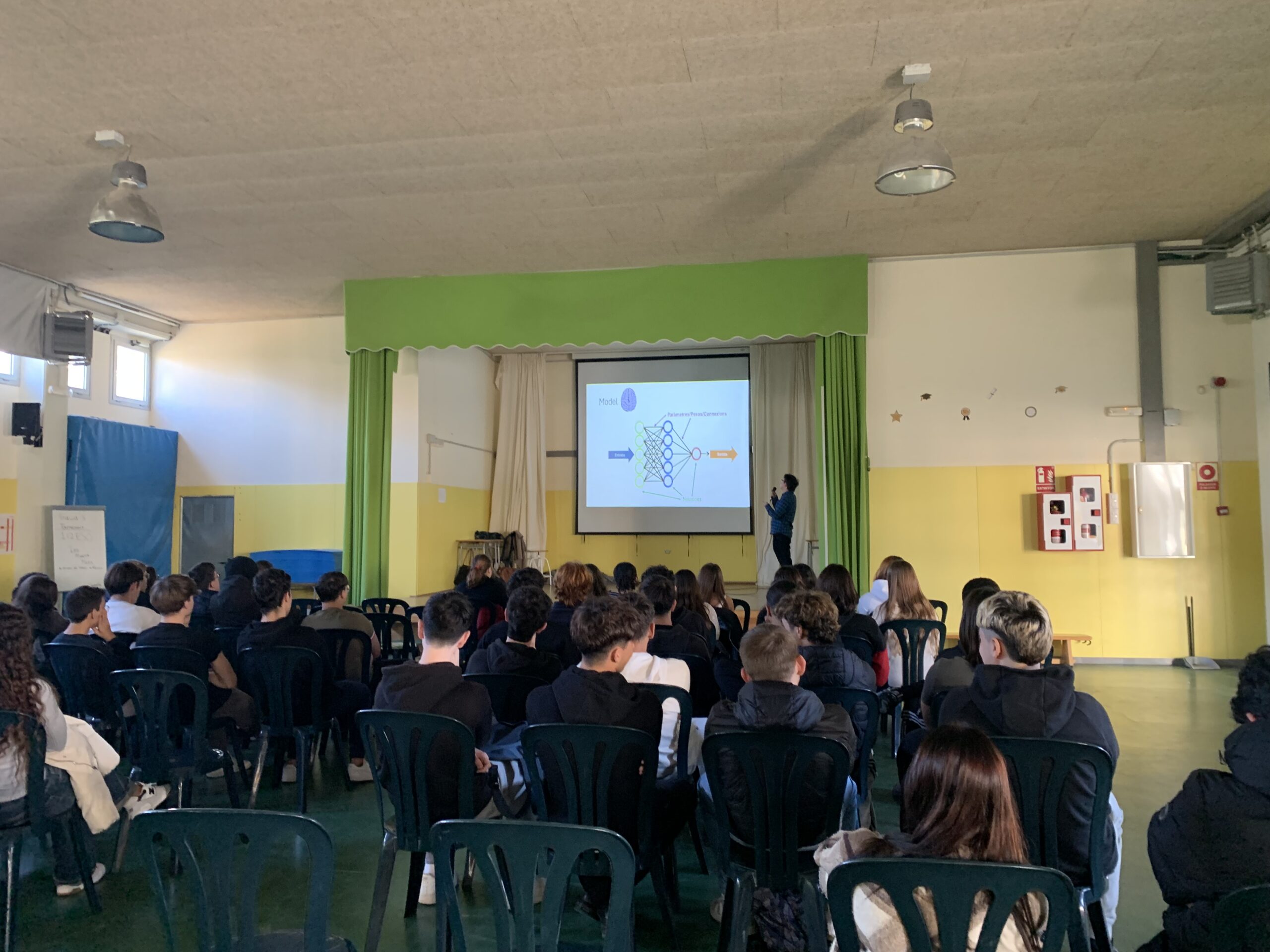 Durant la sessió, es van abordar conceptes com el funcionament d’algoritmes, l’ús de models d’IA en àmbits creatius i professionals, així com els perills associats, com la desinformació i el biaix algorítmic. La xerrada va concloure amb un debat enriquidor, on els estudiants van compartir les seues inquietuds i punts de vista, demostrant un gran interès i compromís amb el tema.Aquesta activitat s’emmarca dins de l’objectiu del centre de fomentar el pensament crític i la reflexió sobre els reptes del món actual.