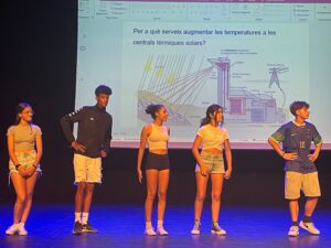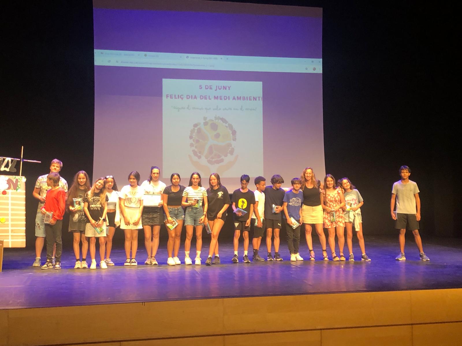 El passat divendres 7 de juny l’alumnat de segon d’ESO junt amb els guanyadors dels diferents concursos d’escola verda van celebrar el dia Mundial del Medi Ambient al Teatre Auditori de Salou. Durant la jornada festiva es va projectar la pel·lícula “Energia 3D” i posteriorment es va realitzar un quiz show presentat pel professor Toni Parra, qui va preparar una gran varietat de preguntes i proves que l’alumnat, per equips, havia de resoldre.