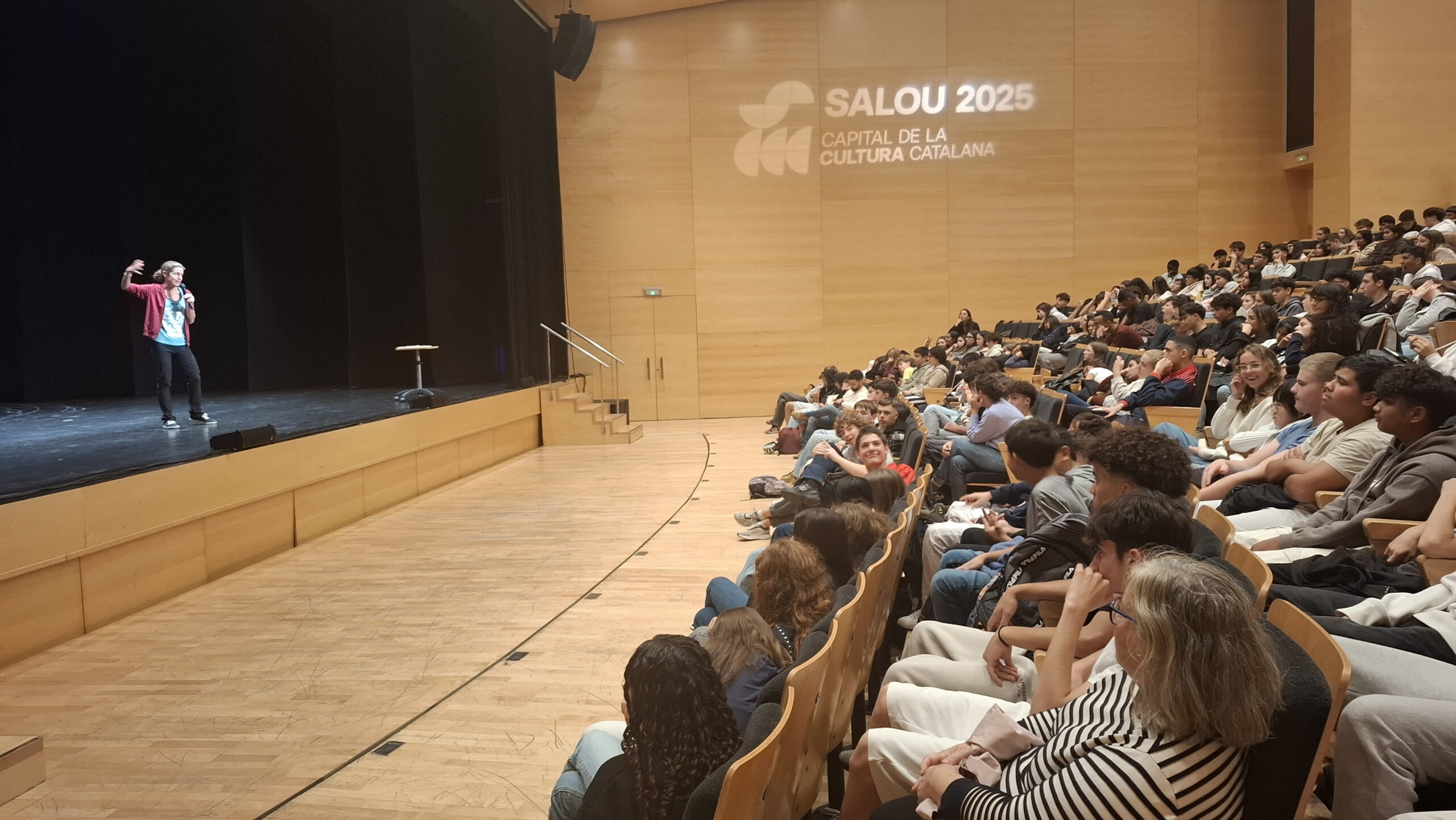 Tots hem disfrutat amb l’espectacle, que ha tractat des de com funcionen les IA fins d’on obtenen l’aigua els astronautes de l’Estació Espacial Internacional. Els alumnes han participat recreant la comunicació entre dos Homo Habilis.