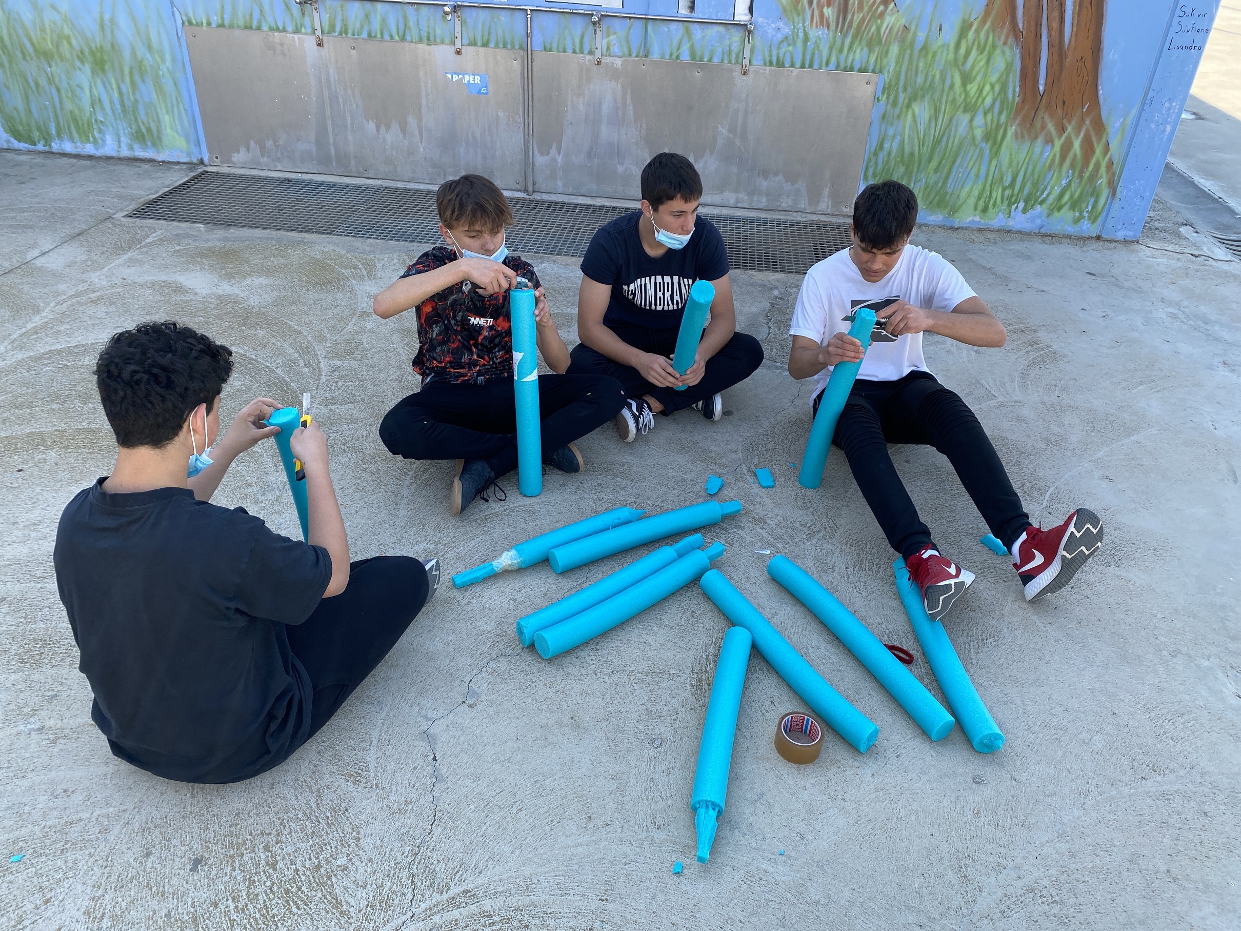 L’alumnat de 4t d’ESO ha preparat els materials per a realitzar la unitat d’esgrima on han fet un combat escenificat dins el marc de la dimensió d’expressió i comunicació corporal.