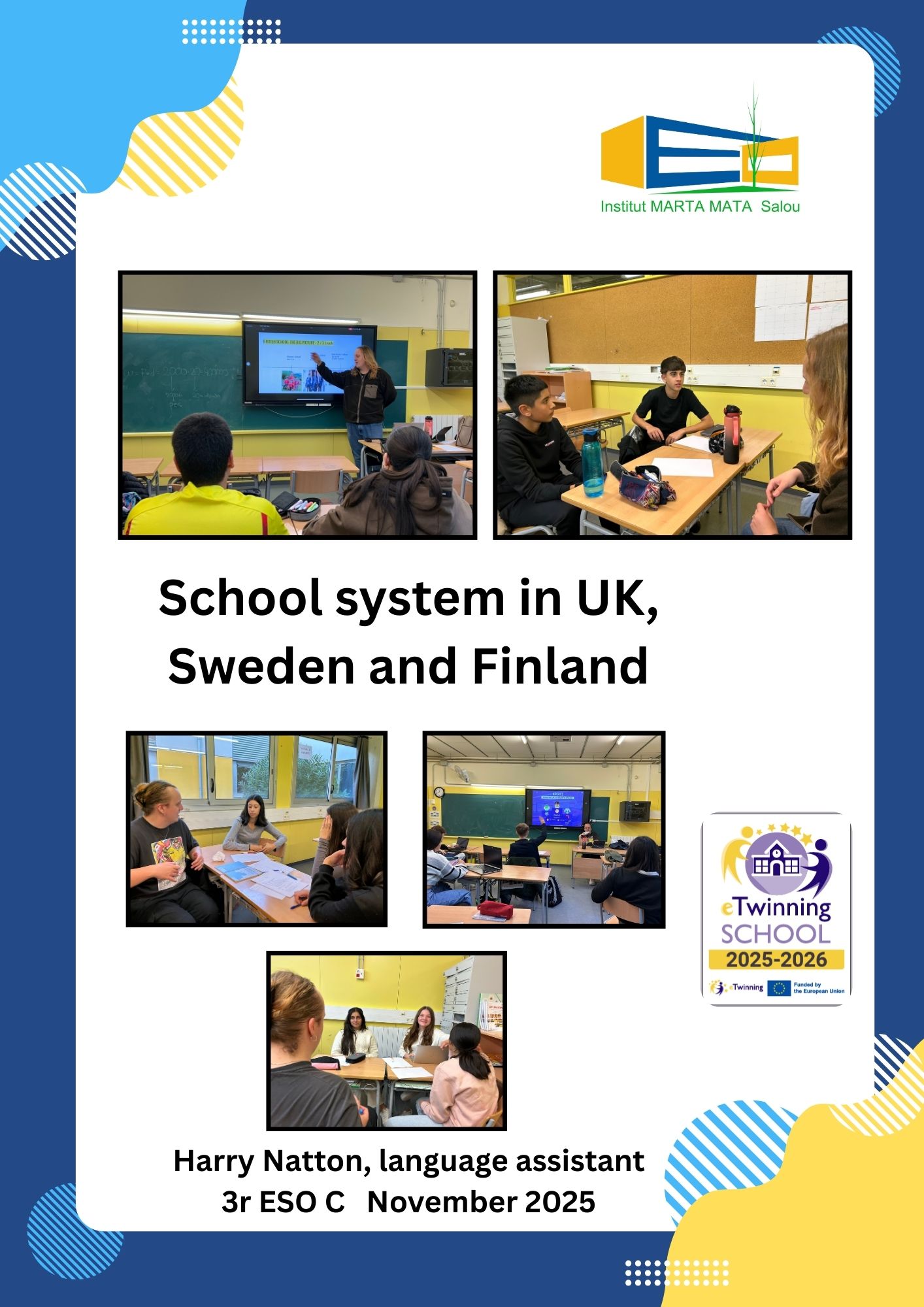 Aquesta setmana l’alumnat de 3r ESO ha tingut l’oportunitat d’aprendre els sistemes educatius de UK, Suècia i Finlàndia. L’alumnat ha treballat en grups i han buscat diferències, similituds i quins aspectes voldrien adoptar a l’institut. Ha sigut molt interessant. També han jugat a un Kahoot per veure qui havia retingut més informació.