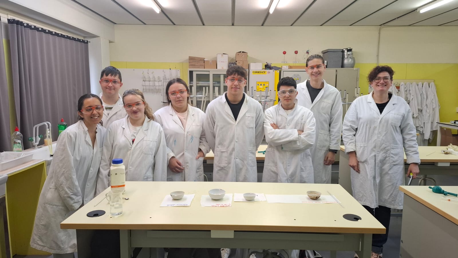 Dins del marc del Erasmus +, hem treballat, amb els alumnes de 4t, els informes de laboratori en anglès. A més de fer pràctiques per estudiar l’estructura de l’àtom i el funcionament dels indicadors àcid-base, ho hem fet en anglès per fer servir diferents llengües oficials de la UE.