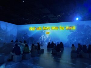 Al teatre es poden visitar exposicions d’art digital que van canviant, en aquesta ocasió vam visitar la que hi ha dedicada a Jules Verne.