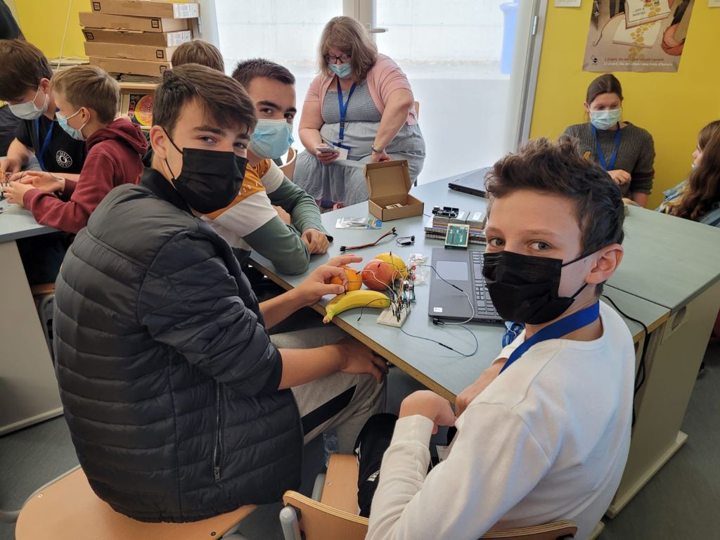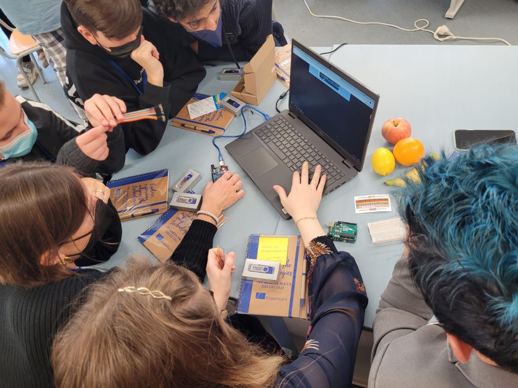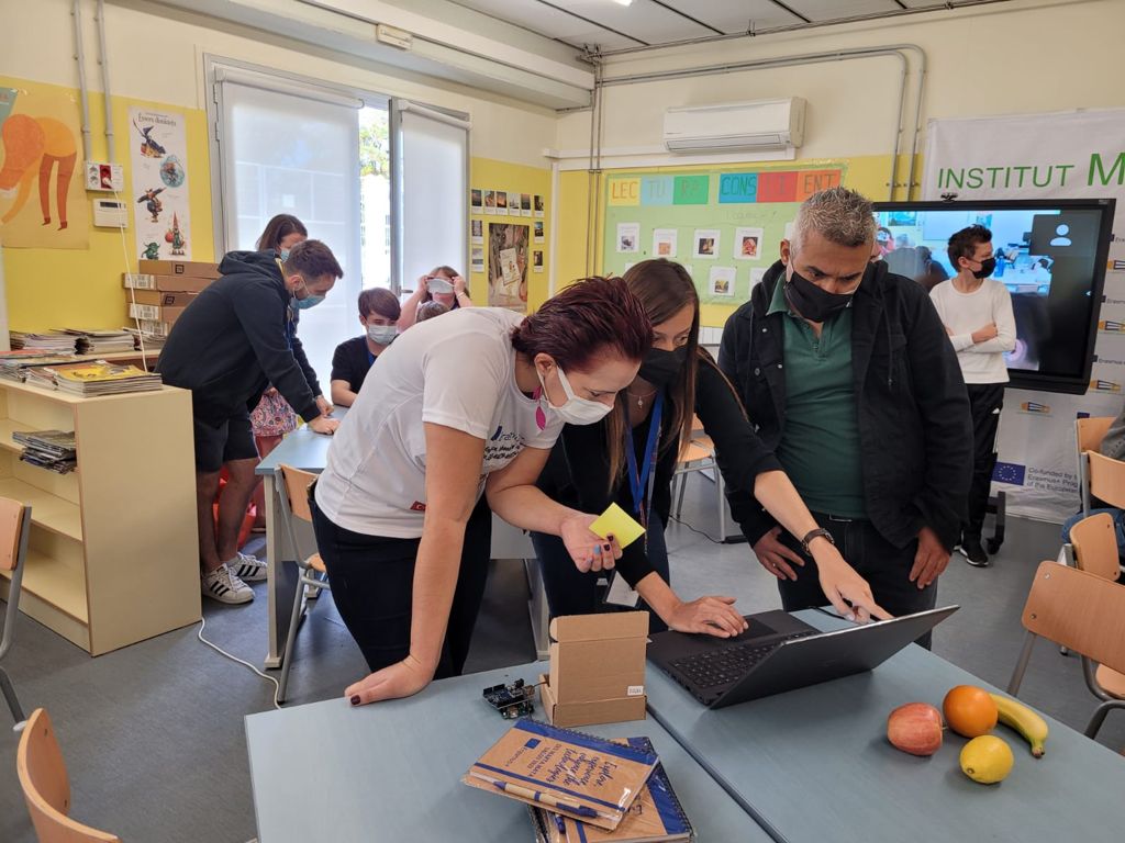 Tot seguit ha començat un taller de construcció d’un piano de fruites utilitzant plaques arduino on la melodia sortia de la conductivitat de les fruites. Ha estat molt interessant. Els alumnes de 3r d’ESO, Adrià Martínez i Danil Tingaev han participat en el taller dels docents Joan Cid i amb la coordinadora del projecte Exexente, Aïda Tapia. Han fet un esmorzar al jardí de l’institut on professors i alumnat han pogut intercanviar experiències i conèixer altres sistemes educatius. Han tornat al taller i a ritme de piano han marxat cap a la platja per fer el camí de ronda, després de dinar tots junts davant el meravellós paratge de la Costa Daurada. Han tingut tot el vespre per descansar, per demà estar preparats per visitar el Mare Nostrum, el supercomputador ubicat a Barcelona. També el visitaran alumnat de 1r de Batxillerat científic per tal d’animar-los a estudiar graus científics, un dels grans objectius de l’acreditació Erasmus obtinguda amb una durada de 6 anys.
