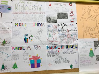 Aquestes últimes setmanes de classe abans de Nadal, els alumnes d’aula d’acollida de l’institut hem realitzat una sèrie d’activitats per tal de conèixer com se celebra el Nadal a Catalunya, però també hem realitzats murals explicant com celebrem el Nadal als nostres països d’origen o quines festivitats realitzàvem allà. Aquests dies hem après qui és el tió i fins i tot n’hem fabricat un, hem cantat algunes de les nadales més conegudes, hem fet postals de Nadal i hem après com es viu i se celebra el Nadal a Catalunya. Però de tot el que hem fet, el que més il·lusió ens ha fet, ha estat fer cagar el tió. Els alumnes s’ho han passat molt bé cantant la cançó, recollint els regals i vivint la màgia del Nadal.