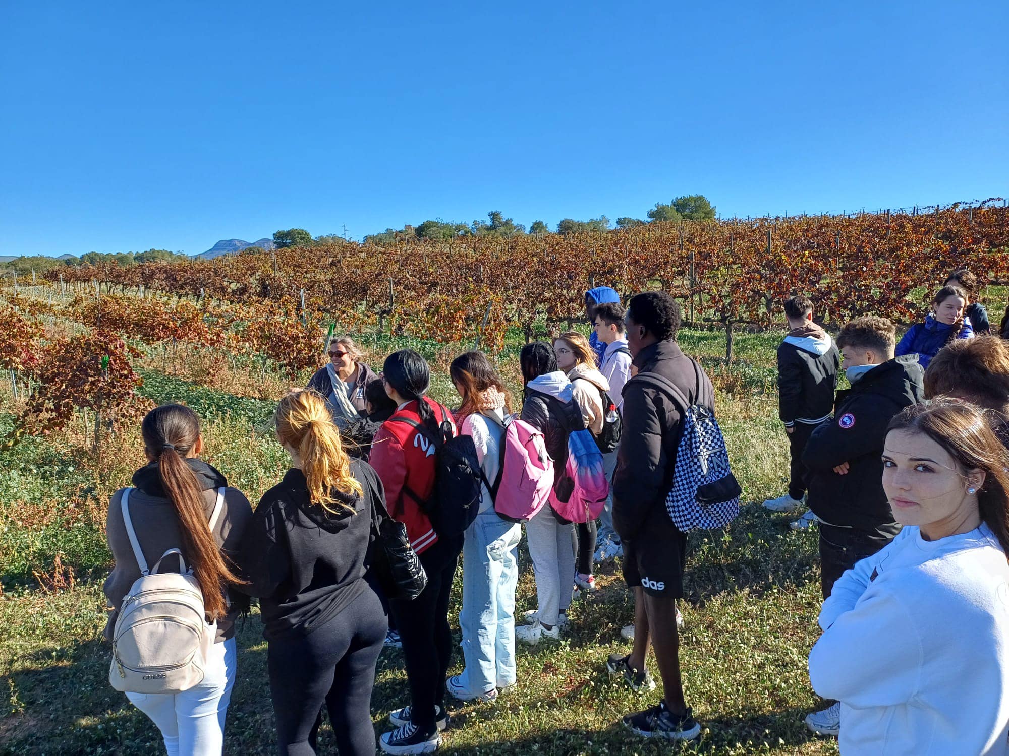 Els alumnes de les matèries “Problemàtiques socials” de 1r de Bat i de “Geografia” de 2n de Bat han visitat els conreus de vinya i olivera del celler Estol Verd de Rodonyà amb l’objectiu de conèixer de primera mà el sector agrícola català, el paper de la dona al món rural, la producció ecològica, les conseqüències del canvi climàtic en l’agricultura i el despoblament rural.