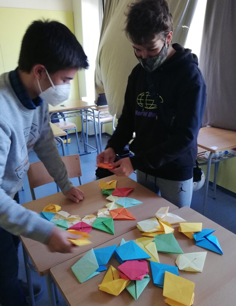 A 4t d’Eso A, vam treballar de forma cooperativa, plegant una bonica estrella fractal, recordant conceptes bàsics de geometria. Vam refrescar la memòria amb el càlcul d’àrea d’alguna figura geomètrica, utilitzant el teorema de Pitàgores i els nombres irracionals.