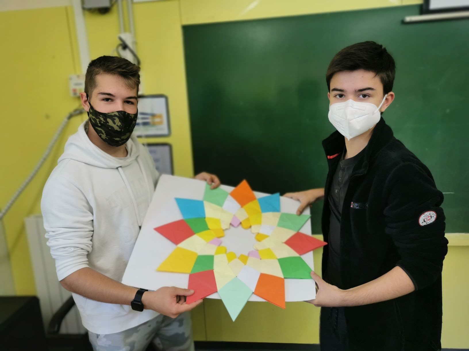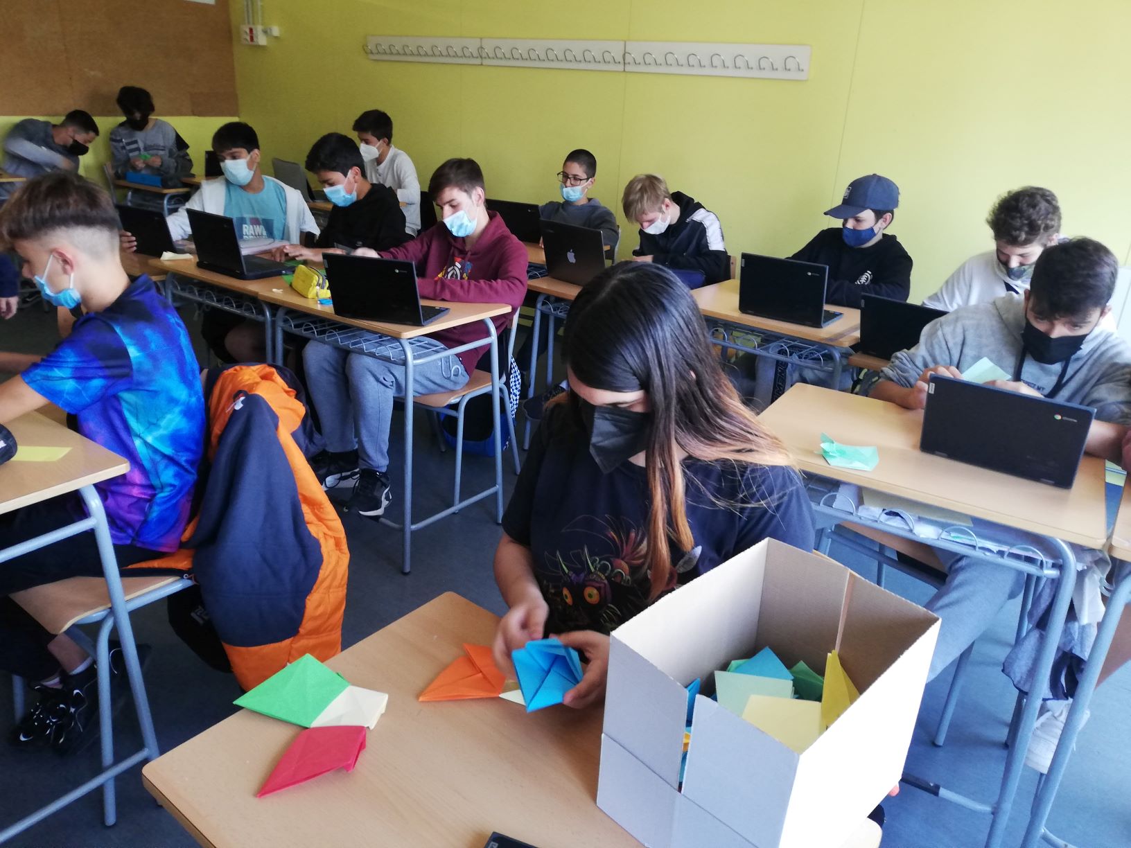 A 4t d’Eso A, vam treballar de forma cooperativa, plegant una bonica estrella fractal, recordant conceptes bàsics de geometria. Vam refrescar la memòria amb el càlcul d’àrea d’alguna figura geomètrica, utilitzant el teorema de Pitàgores i els nombres irracionals.