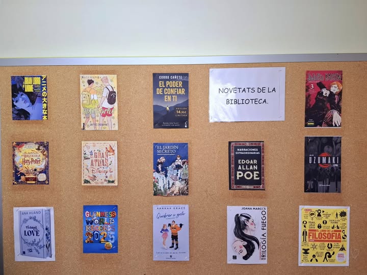 Us presentem les darreres adquisicions de la biblioteca. Hi ha des de llibres de divulgació de filosofia i història, a clàssics de la literatura universal, com els contes de Poe y El jardín secreto de f. G. Burnett fins a llibres actuals de la literatura juvenil, com Harry Potter, Heart Stopper o la Trilogia Fuego.