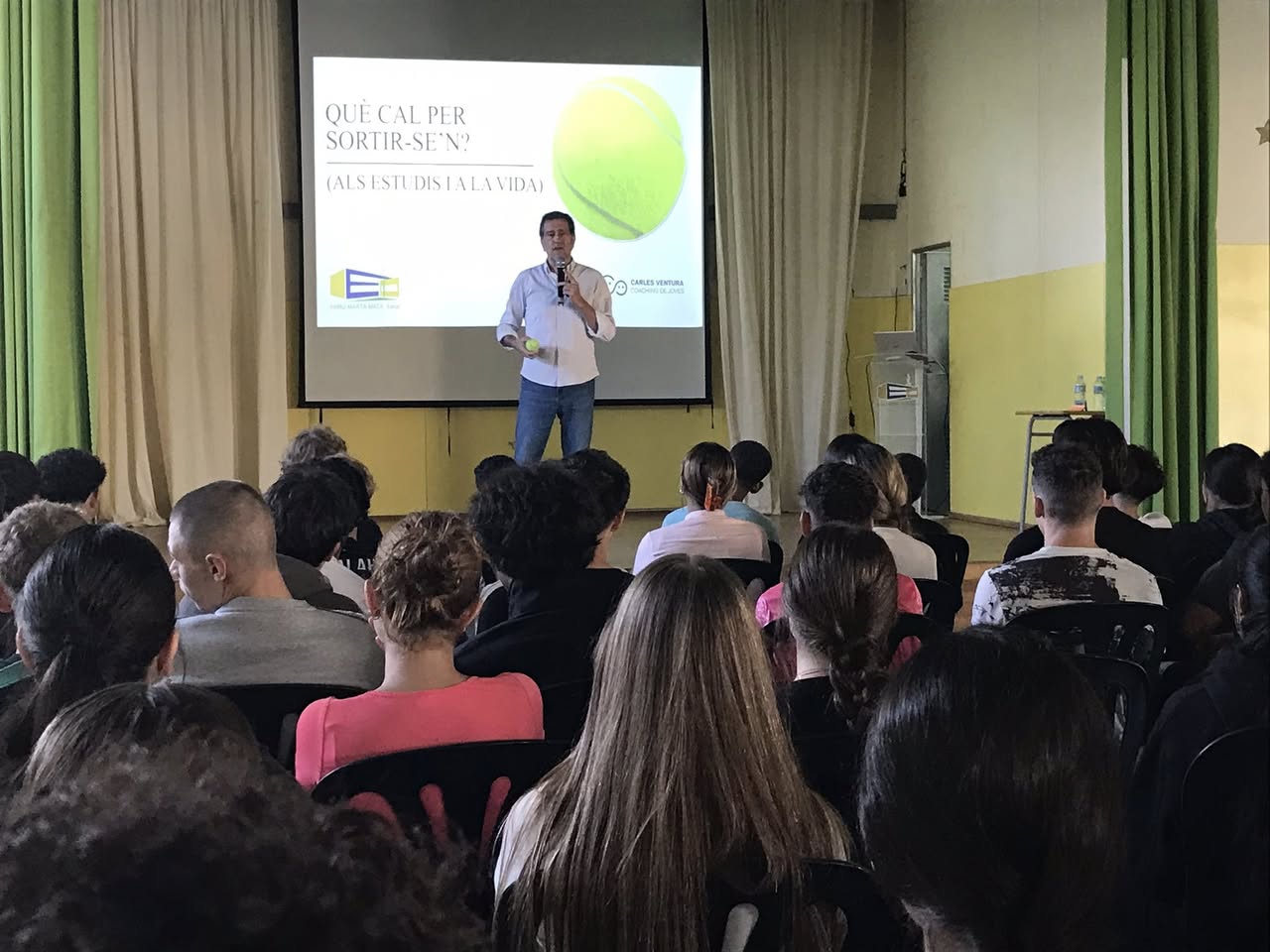 Imatges de les xerrades sobre motivació per als estudis que el coach de joves Carles Ventura va oferir a les mares i pares de l’Institut i a l’alumnat de 4t ESO. Les xerrades formen part d’un programa per al foment de l’èxit escolar subvencionat pels fons europeus #PROA +.