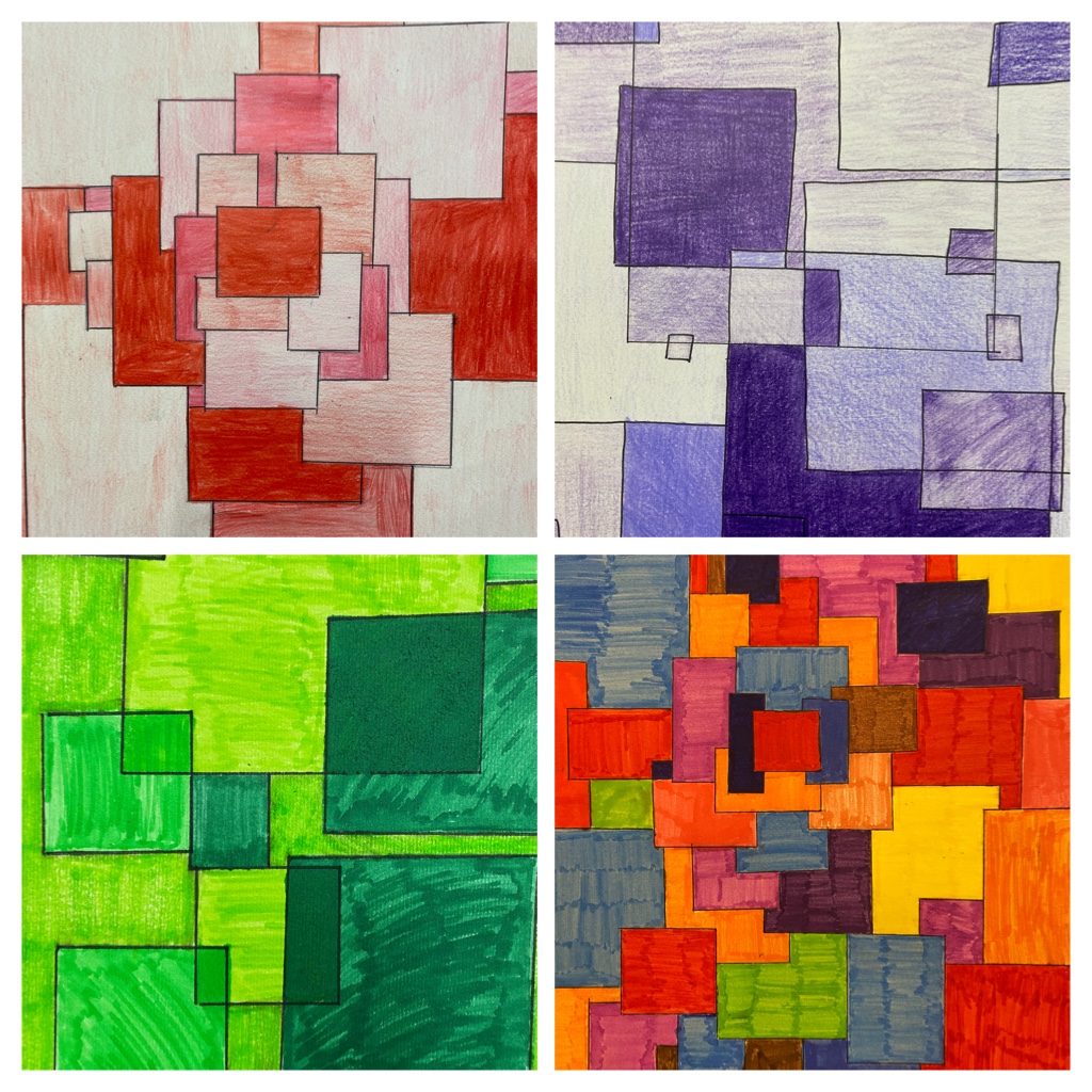 Mitjançant traçats i formes bàsiques a primer de l’ESO recordem Piet Mondrian per transmetre els moviments constants de la vida. Busquem l’equilibri i el moviment i les línies verticals i horitzontals que signifiquen per a ell les tensions que surten de entre els pols oposats de la vida: el negatiu i el positiu, cos i ànima, bo i dolent…On es creuen les línies, en la intersecció s’estableix la relació amb aquests pols. Per a Piet Mondrian, tot era equilibri i tensió, i això és el que transmeten els treballs dels nostres alumnes de visual i plàstica a l’institut Marta Mata de Salou.