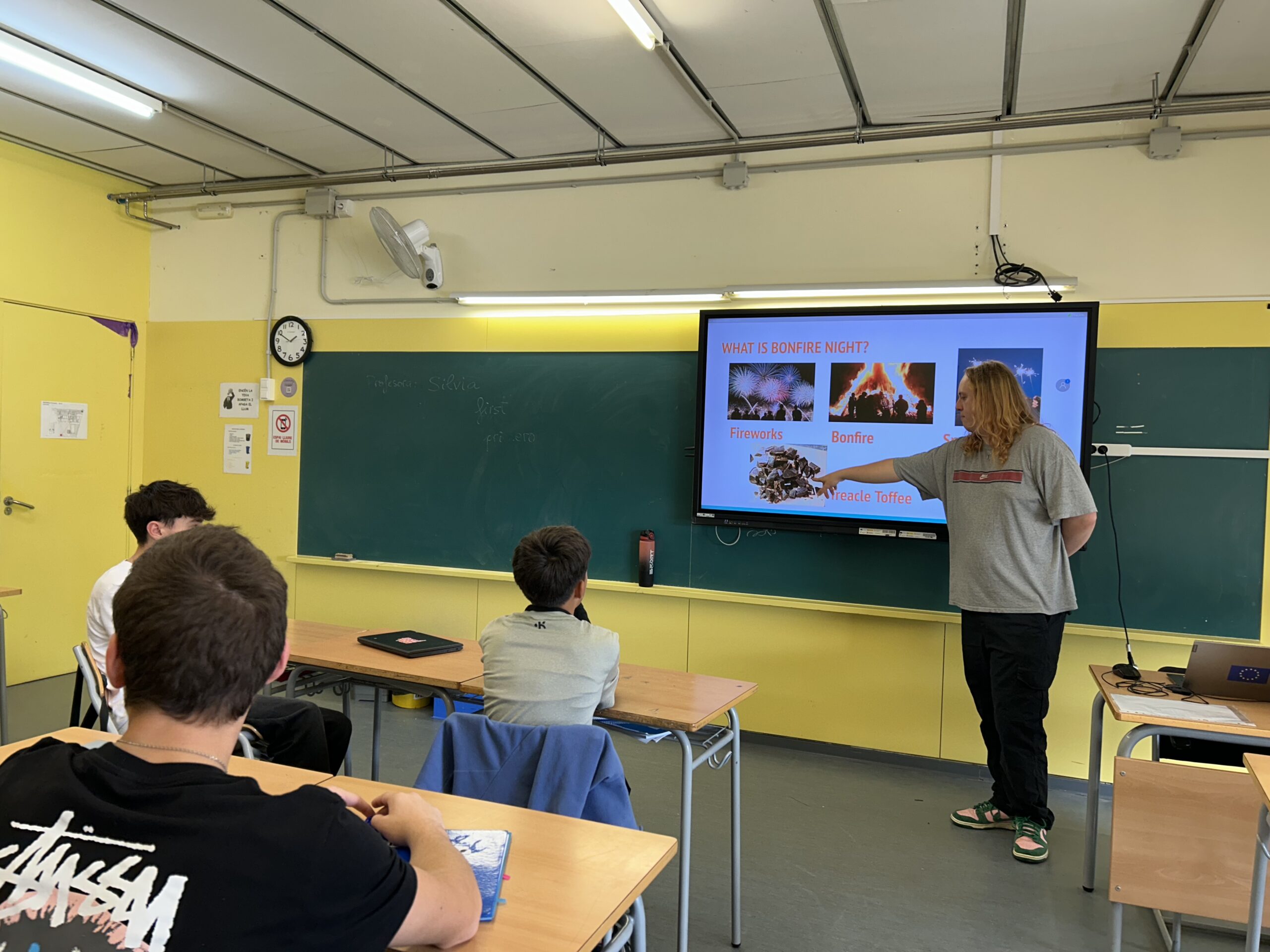 Harry, el nostre assistent de llengua, va presentar-se a la classe de 3r ESO A amb la professora Dolors Virgili, i l’alumnat va fer exposicions orals sobre l’institut, Salou i Ucraïna.