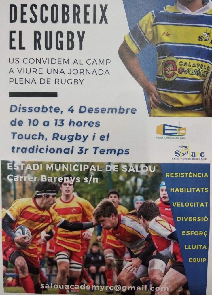 Actualment estem cooperant amb el club de Rugby de la nostra localitat ‘Sharks Salou’ que estan fent una intervenció de dues setmanes per tal d’ensenyar els principis bàsics del Rugby touch i finalitzarà amb una jornada de portes obertes aquest proper dissabte al camp de fútbol.