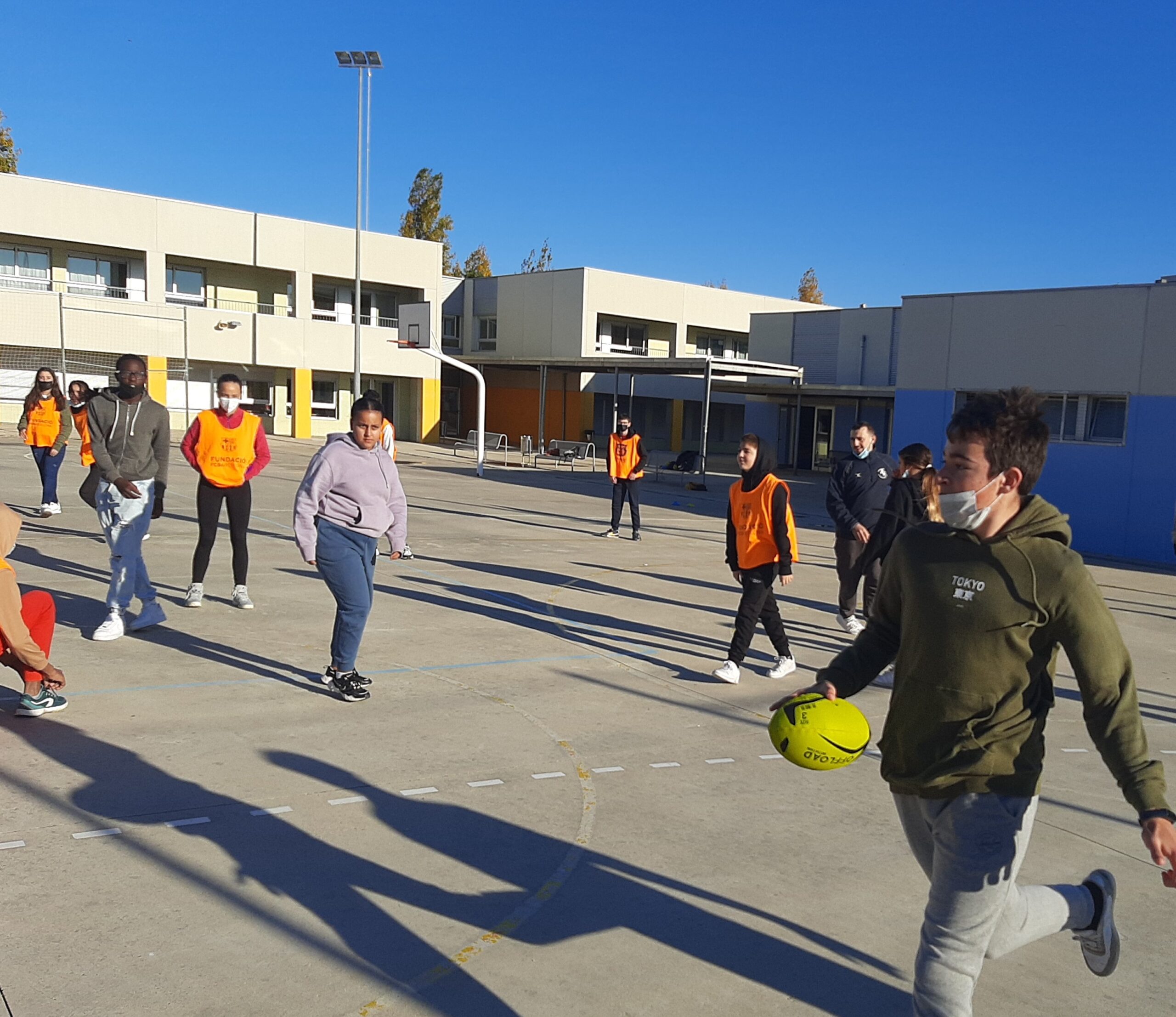 Actualment estem cooperant amb el club de Rugby de la nostra localitat ‘Sharks Salou’ que estan fent una intervenció de dues setmanes per tal d’ensenyar els principis bàsics del Rugby touch i finalitzarà amb una jornada de portes obertes aquest proper dissabte al camp de fútbol.