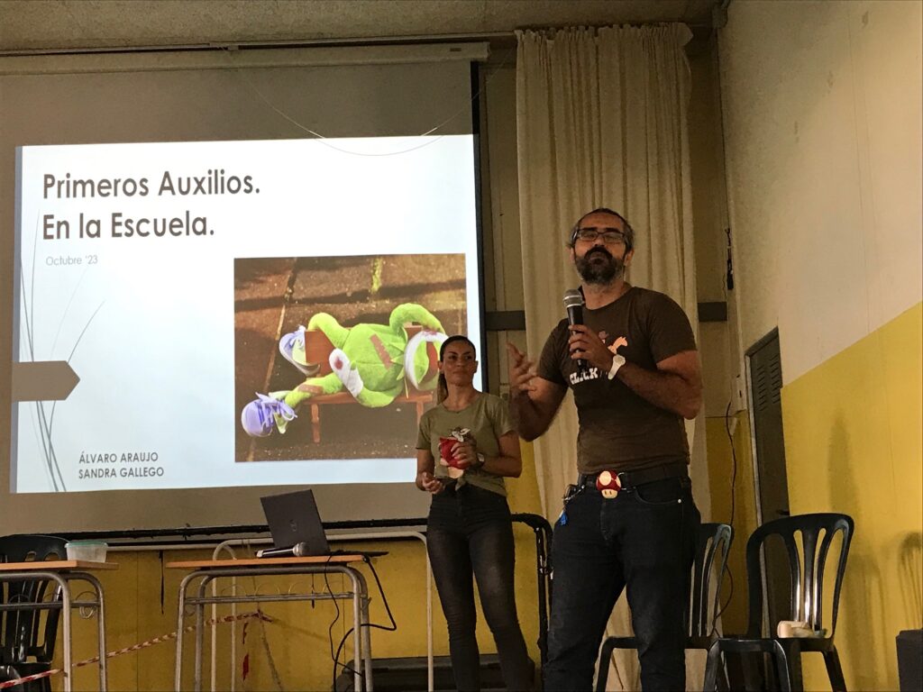 Aquest dilluns el professorat de l’institut hem assistit al taller de primers auxilis que han organitzat la nostra agent de salut, la infermera Montse Pérez del CAP de Salou i la coordinadora de riscos del centre, Patrícia Rodriguez. El taller l’han dut a terme el Dr.Alvaro Araujo i la infermera Sandra Gallego, especialistes en urgències. El professorat hem après com actuar davant d’una urgència i hem practicat les tècniques de primers auxilis ( RCP, ennuegaments,…) amb el material portat.