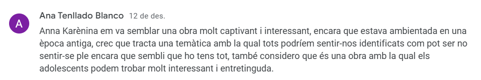 I és que Anna Karènina va ser escrita a finals del sXIX, però com tot clàssic, la seva interpretació encara és molt vigent avui en dia, no només pel tema de l’amor que ja s’ha comentat, sinó també per la problemàtica que l’envolta, les convencions socials i, sobretot, el masclisme arrelat en les societats tradicionals.