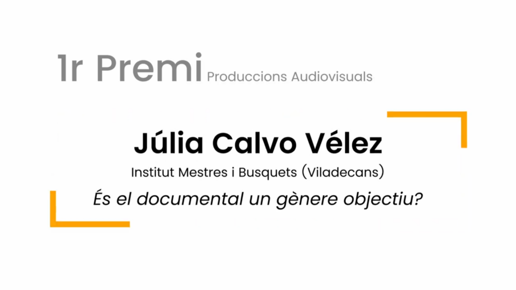 Estem molt contents d’anunciar que la Júlia Calvo, alumna de 2n de Batxillerat Artístic, ha estat guardonada amb el premi al millor Treball de Recerca en format audiovisual, atorgat pel Consell de l’Audiovisual de Catalunya.
