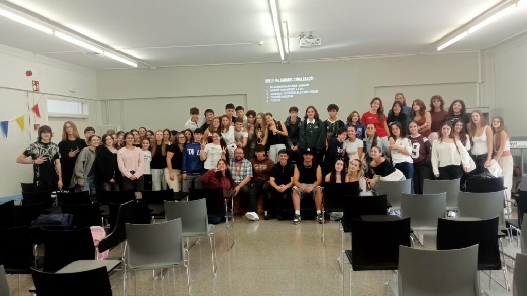 A més, ens van explicar que la música urbana és un gènere molt ampli i que permet expressar sentiments, experiències personals i opinions sobre el que passa al nostre voltant, encara que en Pau ens va comentar que quan composava les seves cançons li agradava inventar-se un personatge. Ens van animar a ser creatius, a no tindre por d’expressar el que sentim i esforçar-nos cada dia, encara que a vegades les coses no surtin com esperem.