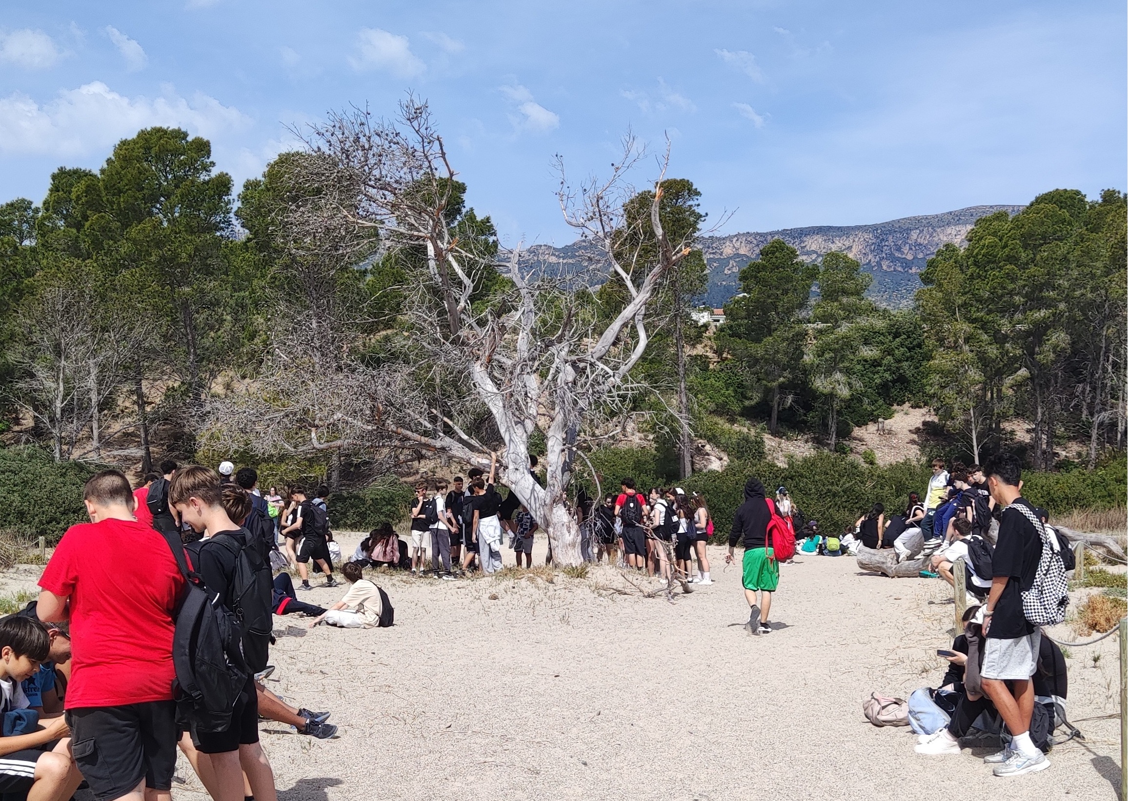 En aquesta jornada, els estudiants s’han trobat amb alumnes de l’Institut Antoni Ballester per fer una activitat de senderisme conjunta: caminar plegats des de Miami Platja, seguint el camí de la via del tren, fins a arribar a l’Espai Natural del Torn, a l’Hospitalet de l’Infant, i tornar. Aquesta trobada ha permès als participants conèixer nous companys, treballar en equip i compartir experiències en un ambient dinàmic i enriquidor.