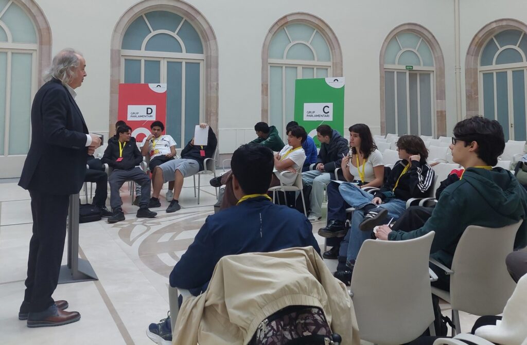 A través d’un joc de rol, els estudiants van assumir el paper de diputats i diputades i treballaren conceptes bàsics de la democràcia com ara la representació, el diàleg, la tolerància, el respecte i el pacte. L’activitat els ha permès practicar l’art de negociar, buscar acords i arribar a consensos, alhora que també afavorí la presa de consciència sobre la importància de la participació ciutadana en els afers públics.
