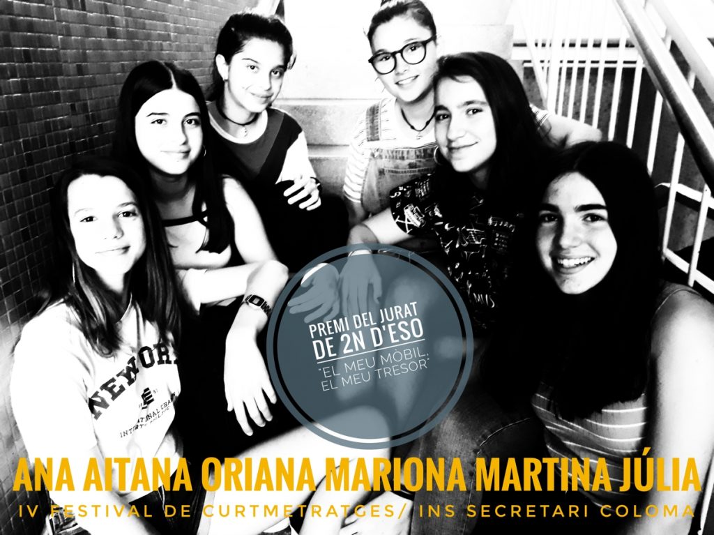 Per un muntatge que coordina perfectament les reflexions d’uns textos crítics amb escenes quotidianes molt ben triades. Pel recurs d’interpel·lar l’espectador sobre una realitat que sovint ens supera. Per unes interpretacions que traspuen espontaneïtat i versemblança… El Premi del Jurat al millor curtmetratge de 2n d’ESO, dins la categoria “El meu mòbil, el meu tresor” és per EN LÍNIA.