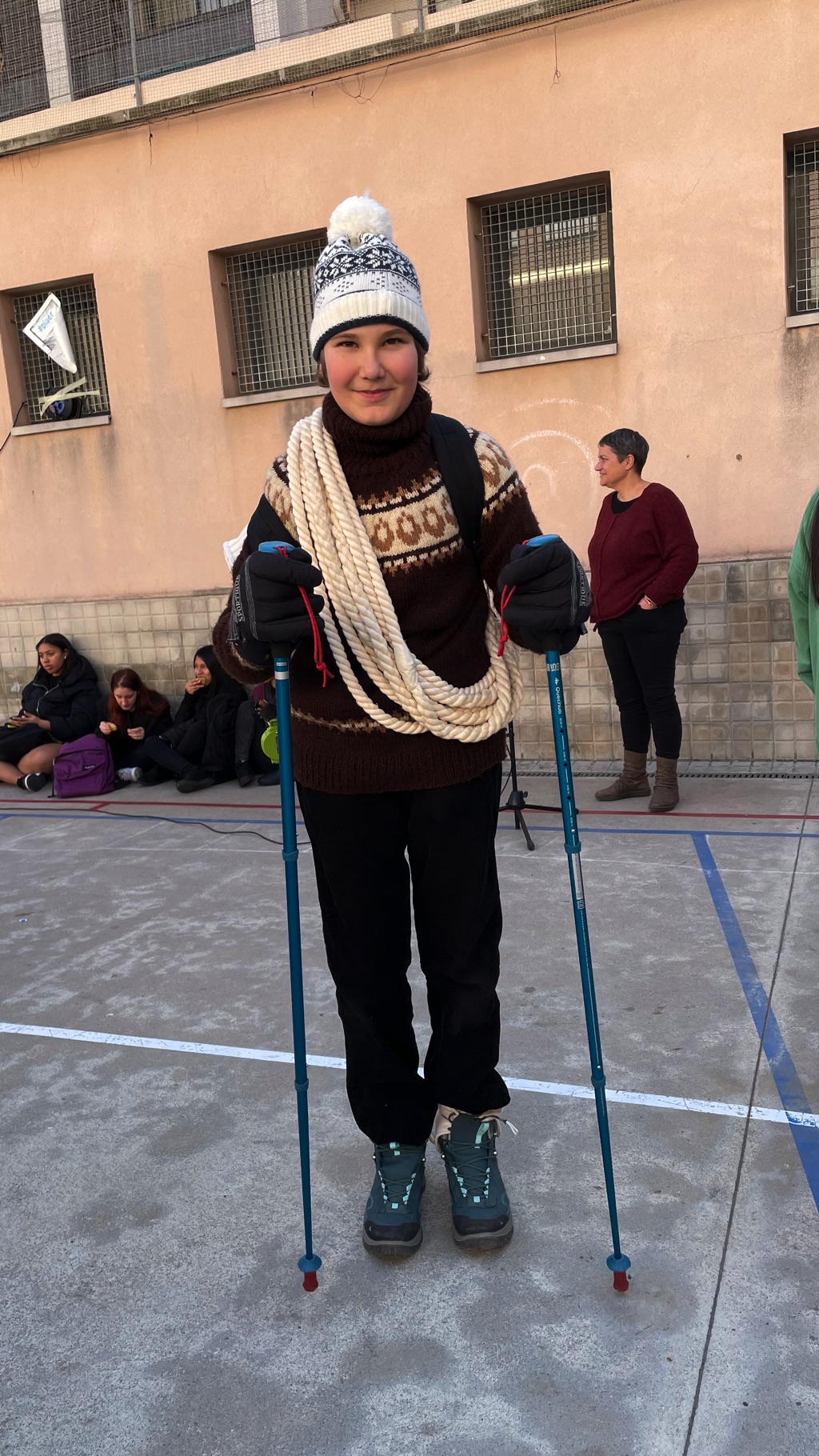 Després d’un bon esmorzar, a base de coca i xocolata que ens oferia la comissió de Carnestoltes, ja estàvem a punt per escoltar l’Oriol Cuxart, alumne de 2n de batxillerat presentador de l’acte, que ens va explicar el sentit de la festa i va donar entrada al programa del matí.