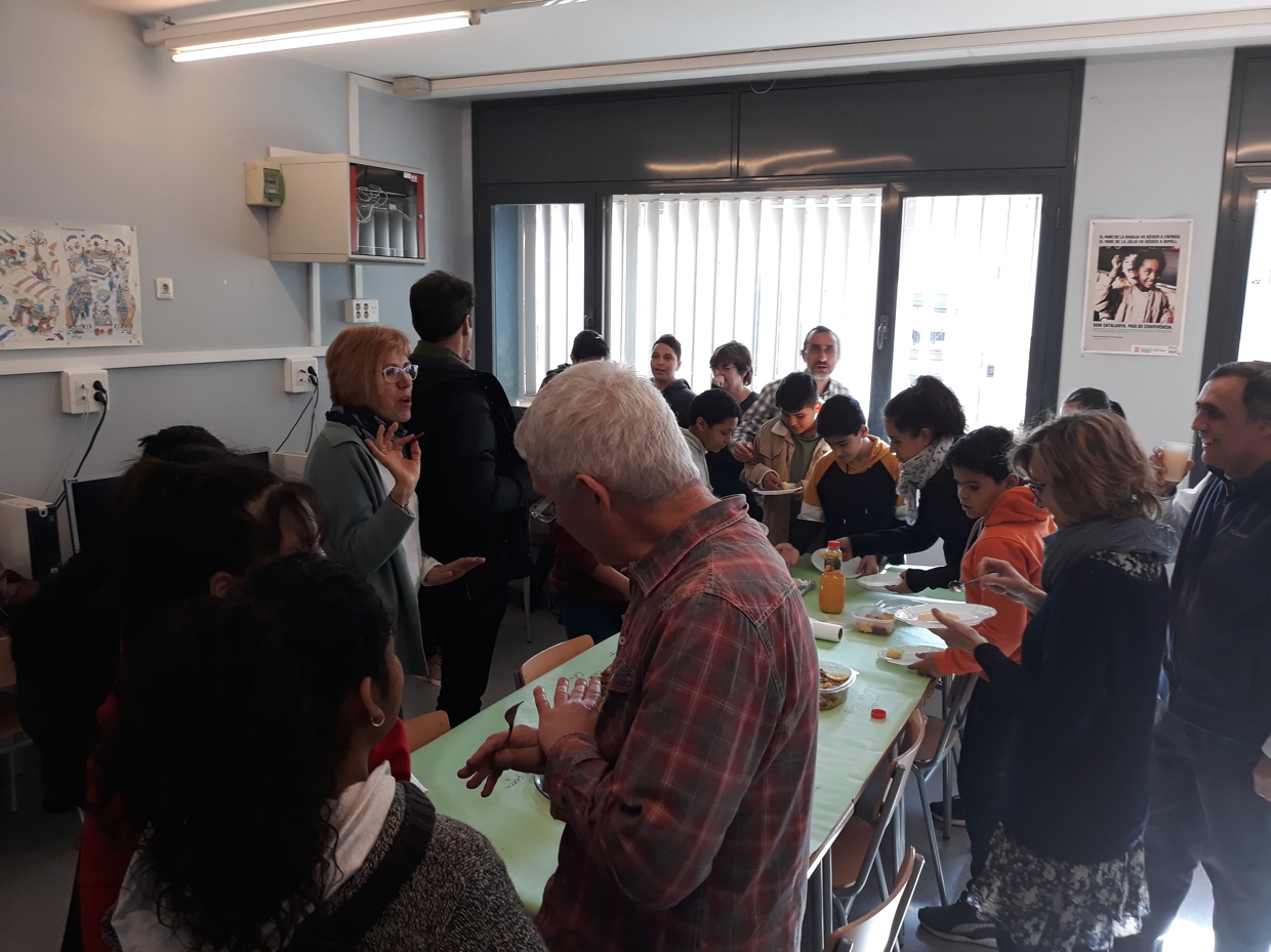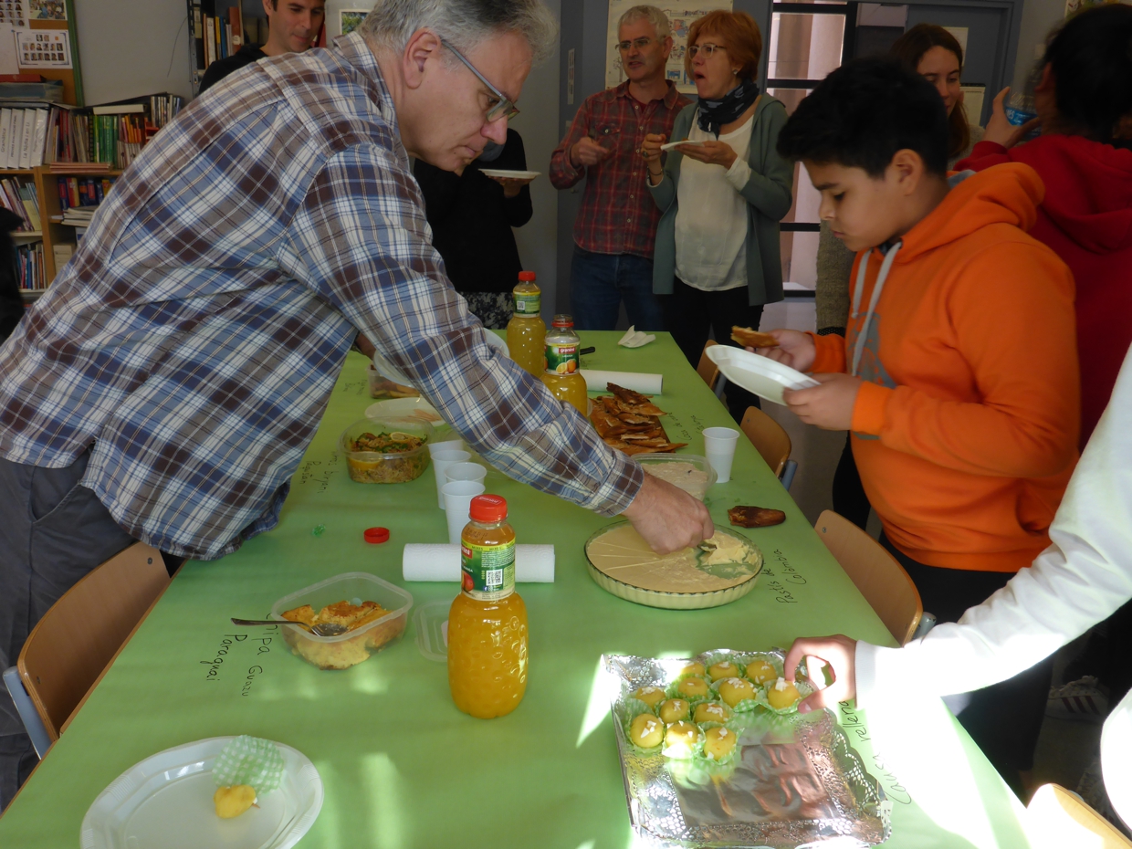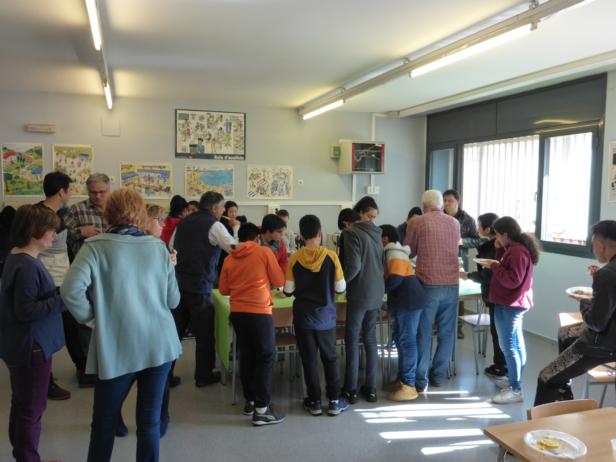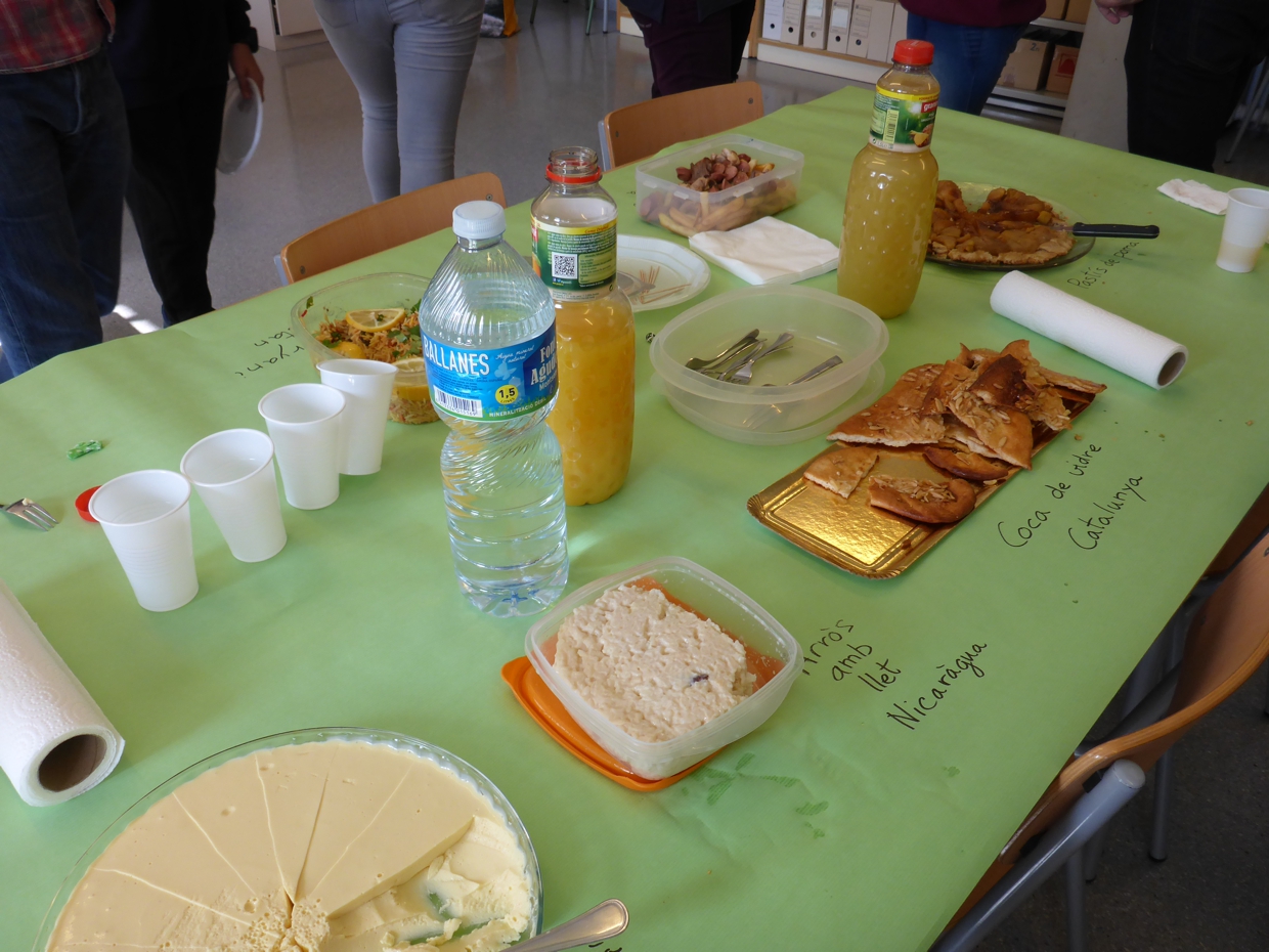 A totes les cultures del món la cuina és un signe d’hospitalitat que serveix també per apropar-nos a una realitat diferent. Doncs bé, aprofitant que l’alumnat de l’aula d’acollida estava treballant les receptes de cuina ha sorgit la idea de preparar alguns d’aquests plats i convidar un matí a esmorzar a tots aquells qui podien passar-se per l’aula. El resultat no podia ser millor: aquelles receptes s’han fet realitat damunt la taula, hem descobert algun gust nou, hem cuinat i intercanviat receptes, xerrat plegats i, finalment, hem quedat ben satisfets compartint la taula.