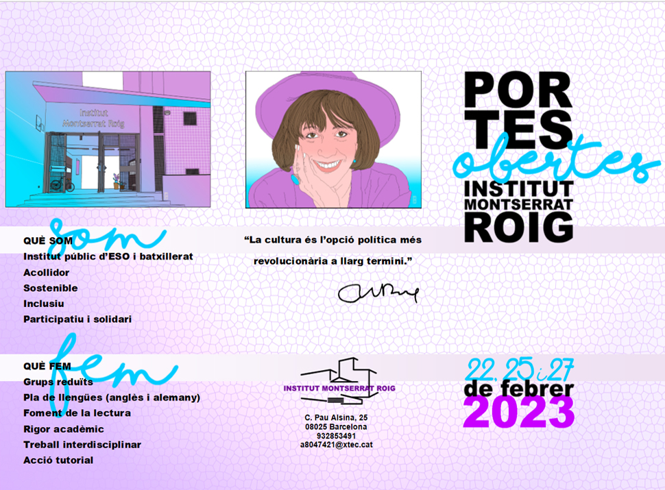 Enguany, després de posar-nos d’acord amb altres centres de la zona perquè la visita sigui compatible amb tots, farem les portes obertes de manera presencial i virtual. D’una banda, farem una reunió informativa per compartir amb vosaltres el nostre projecte educatiu i, d’altra banda, us convidem a visitar les instal·lacions en dos dies diferents: