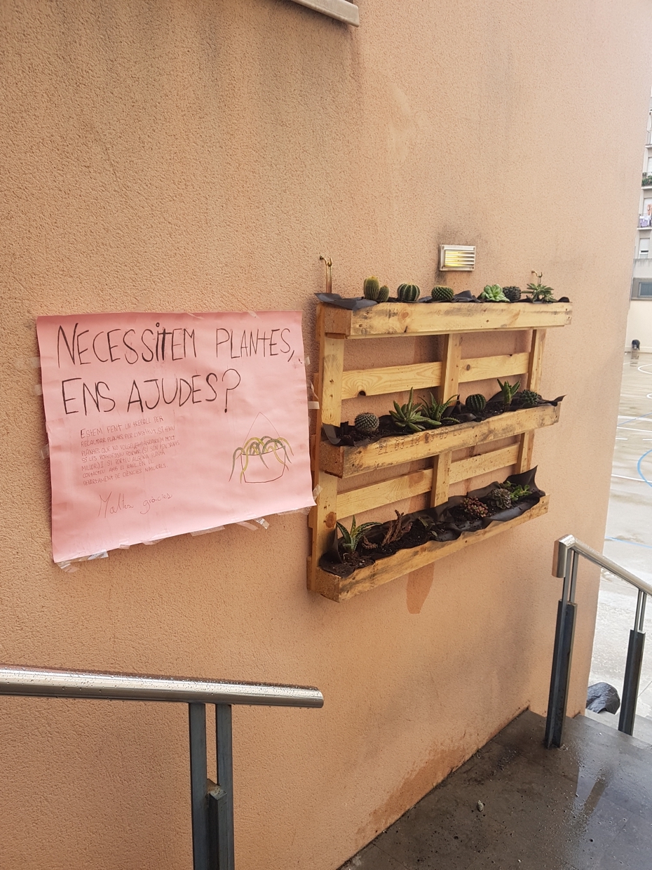 Hem posat en marxa el compostador gràcies a la matèria orgànica portada per l’alumnat i el professorat. I continuem posant bonica l’escola. Els petits jardins verticals ja es poden veure, i també hi ha plantes noves pels diferents indrets.