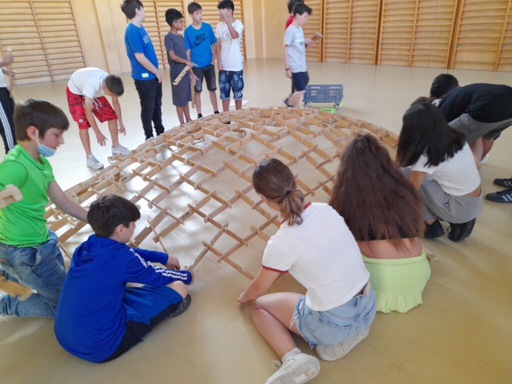 Els alumnes de 1r d’ESO han realitzat aquest taller, organitzat pel MMACA (Museu de matemàtiques de Catalunya), en què poden veure les aplicacions de la geometria en la construcció de les cúpules de Leonardo i la importància del treball en grup.
