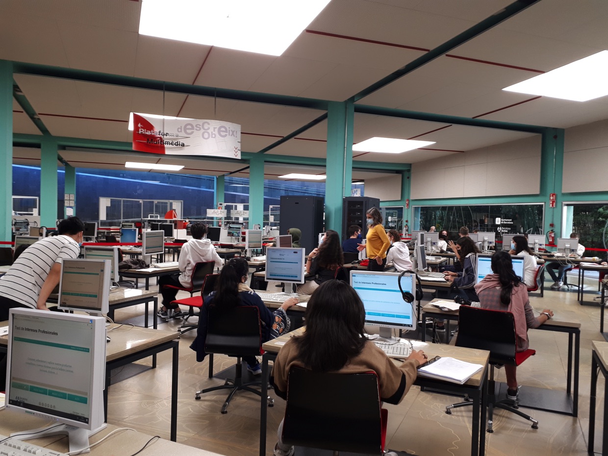 La setmana passada l’alumnat de 4t va visitar les instal·lacions de Porta22, que és un servei d’assessorament i dinamització acadèmica i professional de Barcelona Activa. Porta22 posa a l’abast de grups d’estudiants sessions a mida on, a través de continguts i recursos innovadors, es treballen processos d’orientació professional i s’explora la realitat del mercat de treball. Tot amb l’objectiu de descobrir quines són les portes que s’obriran un cop acabin l’ESO i quins camins hauran de seguir per complir els seus somnis professionals i acadèmics.