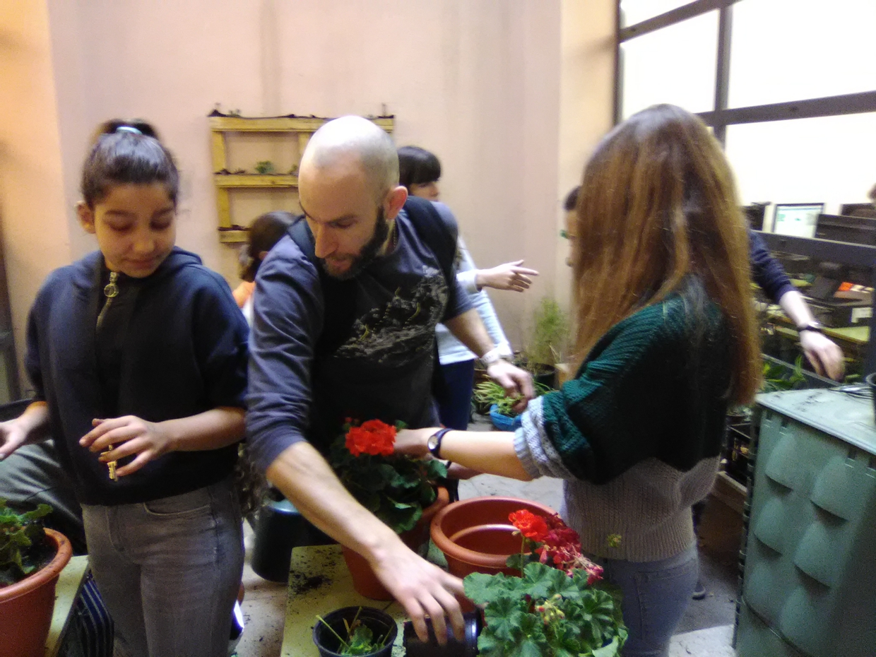 Dins del projecte Escoles + sostenibles, volem recrear un petit pati andalús que encara no està acabat perquè falten unes buguenvíl·lees que aviat arribaran i acabaran de lluir el pati interior. Els geranis d’aquest pati interior, abans de col·locar-los a la paret per part dels de 4t, van formar part durant un mes d’una petita investigació que va realitzar l’alumnat de l’optativa Tècniques de laboratori de primer. Els i les alumnes van fer un seguiment del seu creixement atenent a la superfície foliar, pes, nombre de fulles, nombre de flors i alçada, segons la variable d’un únic factor que era el de quantitat de “nitrofosca” que se’ls va posar. Un cop acabat l’experiment, les van trasplantar i les van deixar a punt de ser penjades a la paret.