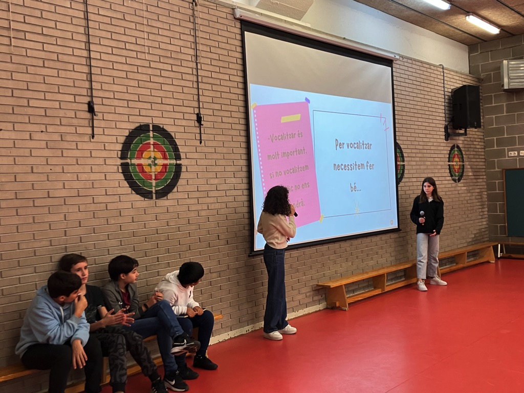 Avui l’alumnat de 1r de la ESO ha anat a fer uns tallers pràctics sobre el que han après a la matèria optativa d’oratòria a l’escola Pau Casals.