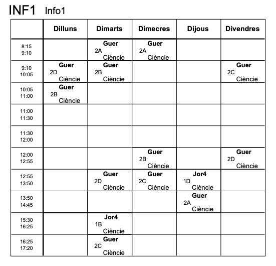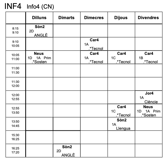 | Horari Info 4 | Horari Pati | Aula Polivalent |
