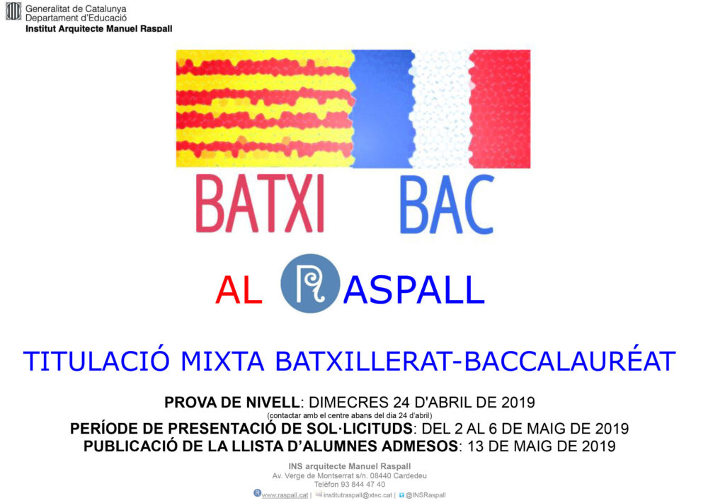 Com cada curs, a la festa de graduació, organitzada per l’AMPA del Raspall, passem uns vídeos recopilatoris d’imatges d’activitats dels nostres alumnes al l’etapa que finalitzen. Tots ells els tenen recollits a una memòria USB que l’AMPA els prepara. Volem també compartir-los amb vosaltres. 4rt d’ESO 1r de Batxillerat Batxibac