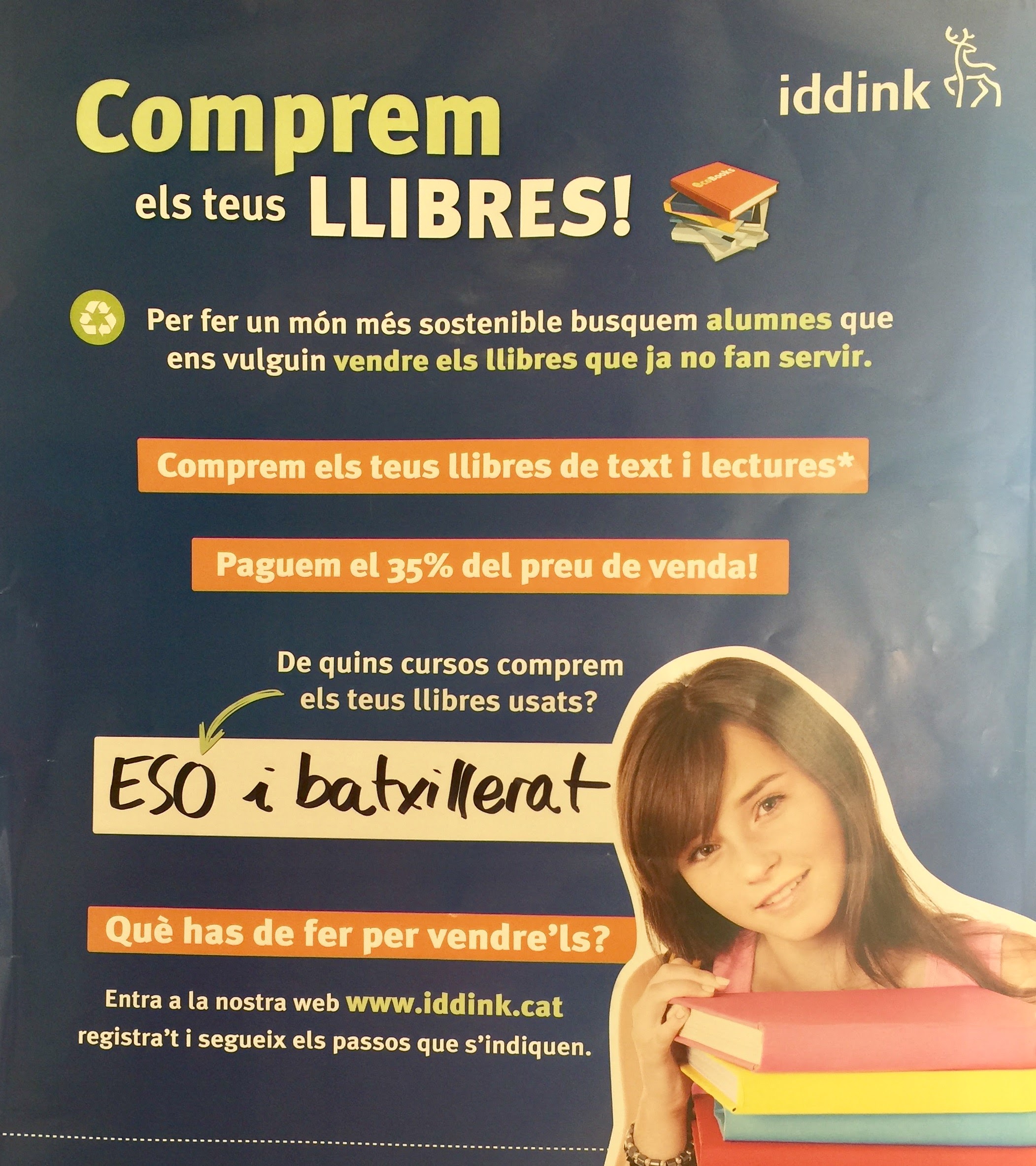 Compra de llibres per l’empresa IDDINK (4-7-2017) Feu un comentari / Per admin / 21/06/2017 / AFA General Benvolguts/des: De l’empresa IDDINK ens han comunicat que vindran a fer la compra de llibres el proper 4 de juliol de 10 a 14 hores. Per tant, la data de 26 de juliol resta anul·lada.