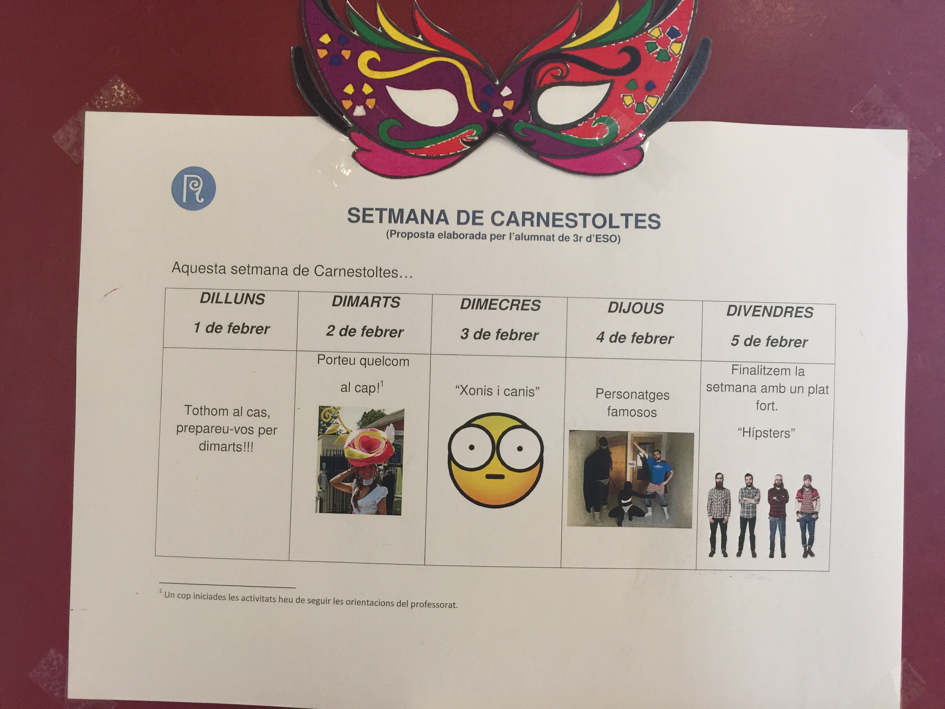 Els alumnes de 3r han decidit que ens encarreg el Sr. Carnestoltes aquesta setmana. Compartim el seu encàrrec!