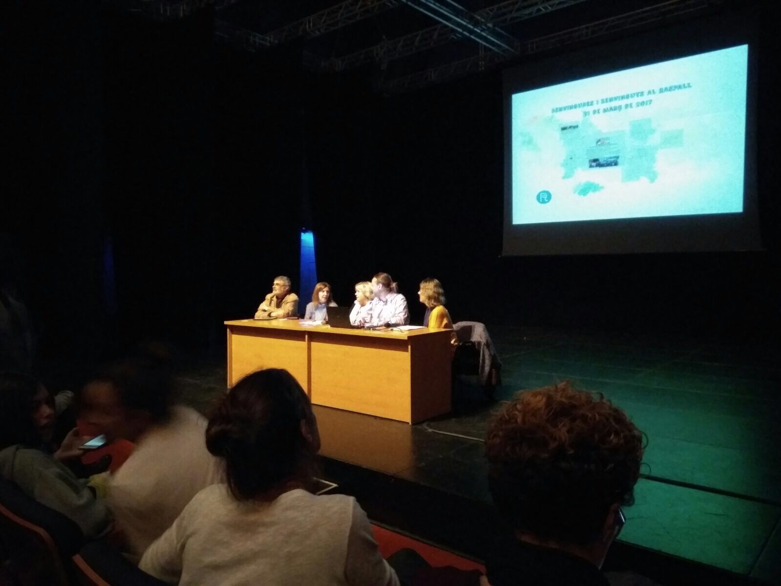 En Pep, la Xela, la Rosana, l’Àlex i la Marta a punt per a comunicar el projecte. Moltes coses a dir en poc temps!